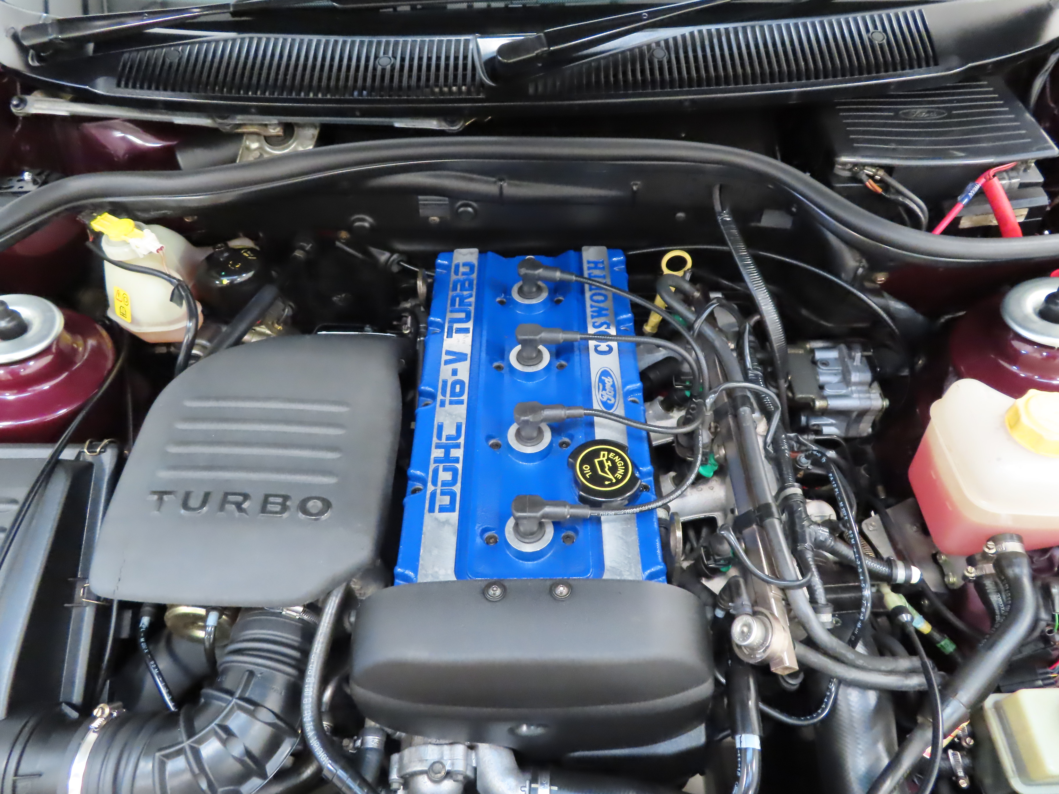 The powerful and well proven Cosworth 2.0 litre 16v turbocharged YBT engine features the blue painted cam cover denotes a number of significant changes over the older YBG unit of the Sierra RS Cosworth and factory standard power is quoted at 227bhp. In 2003, a Stage 2 340bhp conversion was carried out by renowned Castle Performance Engineering which is fully documented in a detailed invoice in the history file. The under bonnet sound insulation material has degraded slightly and there is a small crack in the turbo heatshield. The permanent Ferguson four-wheel drive system with 34/66% front/rear power split mated to a MT 75 5-speed gearbox is light and direct.
