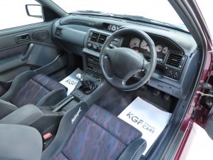 Built by Karmann alongside the regular Escort Cosworth, the Monte Carlo was named in tribute to Francois Delecours’s victory on the 1994 Monte Carlo rally. Available from February 1994 in a numbered limited run of just 200 examples. The Monte Carlo was offered with or without the Aero Pack and in a choice of three colours: Mallard Green, Ash Black or Jewel Violet. A mere 73 RHD Monte Carlos were made for the British market of which just 12 are in Jewel Violet. (Source: Factory-Original Ford RS Cosworths by Dan Williamson and the RS Owners Club).