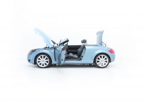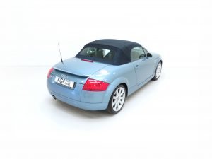 Galvanised body with crumple zones, side impact bars, Electronic Stability Program (ESP), ellipsoidal headlamps, front and side airbags, heat insulating tinted glass, TT door entry strips, tailgate spoiler, electrically powered canvas convertible top with heated glass screen, rollover protection hoops, Driver Information System (DIS), radio cover with ‘TT’ logo, electronic climate control system, toolkit. Factory special equipment; Tonneau cover, electric glass turbulence deflector, leather upholstery, multi-level seat heating, Audi Concert stereo upgrade, BOSE sound system, CD autochanger. Dealer options; Audi floor mats. Accessories; Chromed seat belt guides, leather document pouch.