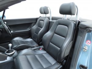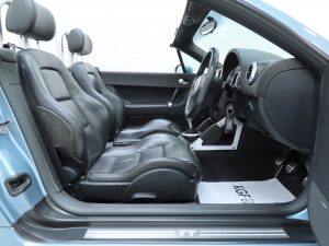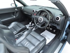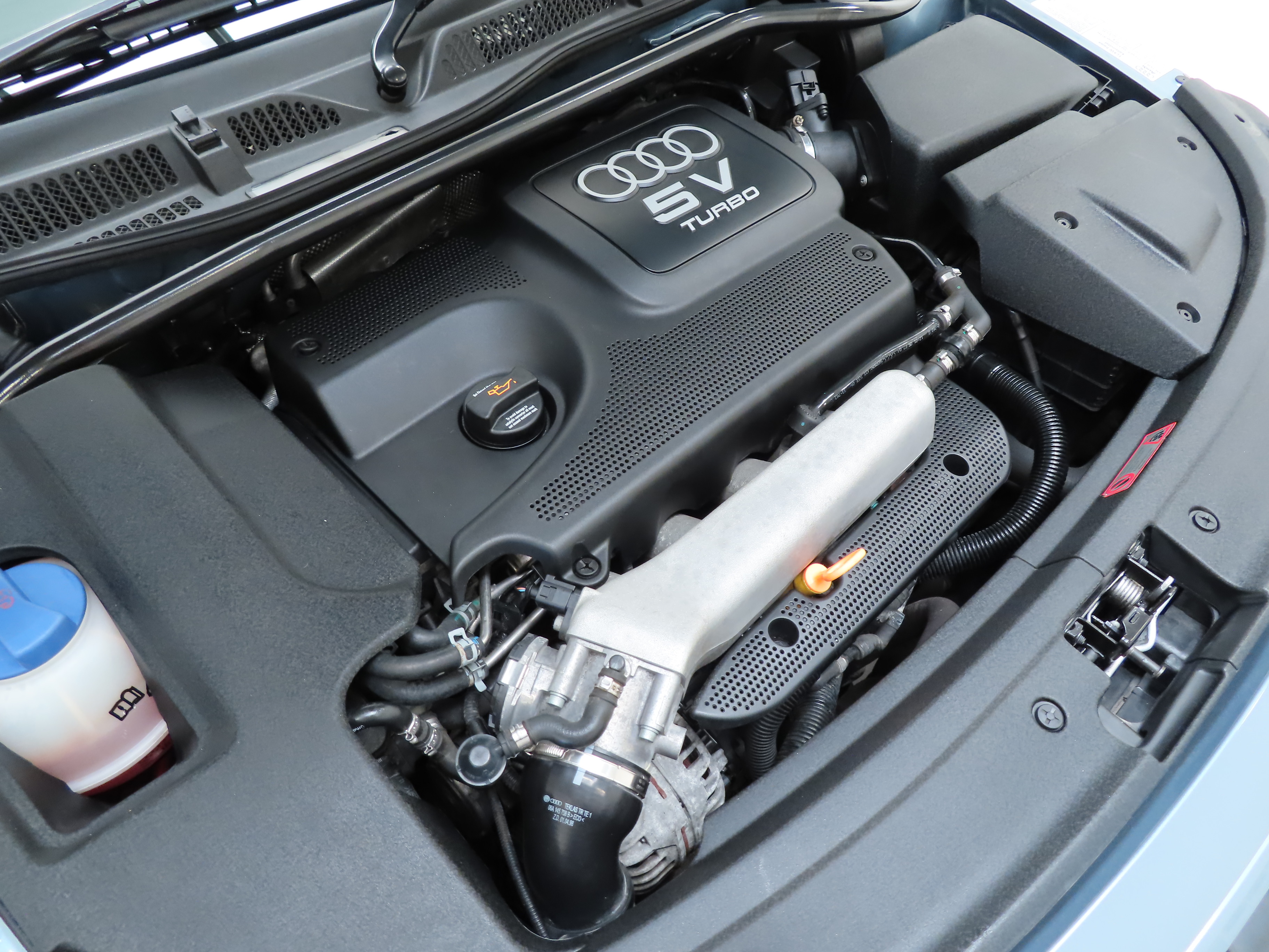 This twin seater Roadster is the perfect combination of sports car enjoyment but with no-compromise Audi build quality. The original and factory optional Black Leather upholstery, (Code JN), is beautifully clean and wear free with the supportive bolsters firm and undamaged. The quality carpets are spotless having been protected from new by genuine Audi floor mats of which the driver’s side mat is slightly worn. All aluminium elements trim pieces, controls and functions are pristine and operate perfectly including the heated seats and ice-cold electronic climate control. The Driver Information System (DIS) and other LCD displays are perfectly clear with all pixels intact, quite rare for the Mk1 TT. The factory upgrade Audi Concert sound system with optional CD autochanger and BOSE sound system offers deep, clear and crisp audio pleasure. A very clean and unspoilt interior.