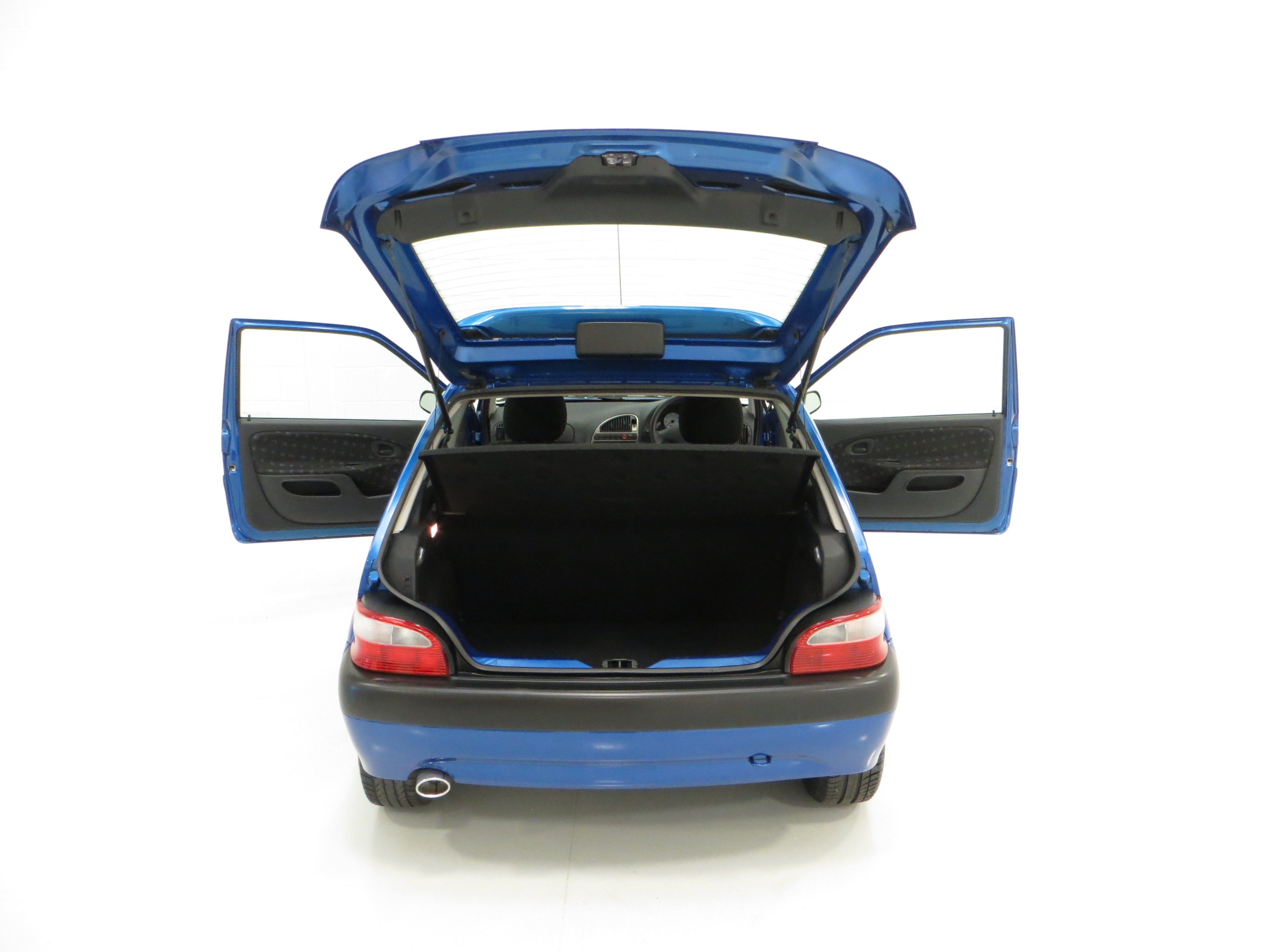 A wonderful testament to the care bestowed on this cherished car is the perfect condition of the fragile interior. The original Delta cloth upholstery only fitted to the VTR model is totally unmarked along with the pristine door inserts. All carpeting is spotlessly clean and remains protected by the original Saxo floor mats. The headlining, plastic trim and fascia are perfect and fully functional white dials remind the driver of the sporting credentials. The original RDS radio with single CD remains fitted and operational, and the factory paint code and data stickers remain affixed inside the driver’s door aperture. The boot area containing the wheel brace and towing eye is very clean and displays PDI markings and the original metal data plate. An immaculate unspoilt interior.