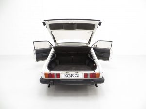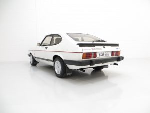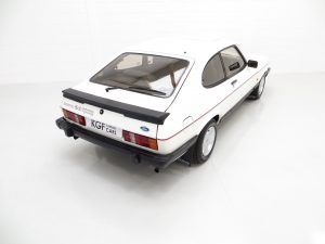 The iconic Capri 2.8 Injection Special needs little introduction and this example is one of the last cars produced. Finished in desirable Ford Diamond White, (Code B3), the paintwork boasts a bright finish and polished shine with all decals fully intact and correct. Carefully touched in stone chips to the front and only minimal age-related imperfections are visible upon close scrutiny, not to spoil the overall impressive appearance. The factory fitted panels are straight with linear gaps and the exterior trim items and bumpers are excellent. All glass is security etched with the registration mark along with the lenses which are the original Hella and Ford fitment with ‘Made in England’ lettering. Thankfully the underside is free from excess applied underseal to allow easy inspection of the structural integrity. A 1980’s performance legend, exactly as Ford intended.