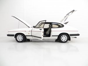 Built at the Cologne plant in November 1986, one month before Capri production ended, this 2.8 Injection Special was registered new on 21st January 1987 by Ford Main Dealers Bussey and Sabberton Bros Ltd or Norwich. The previous owner, Mrs Tracey Sparks, purchased the car in May 1996 and has owned the car for over 22 years. The history file is simply colossal with the huge file presented neatly in chronological order and dating back to the 1980’s. Perusal of the history file would takes hours and there is also every MOT certificate carried out since the first in 1990. The original book packs, Capri operating guides, and point of sale literature are present along with two sets of keys. The car has also been known to the Capri Club International since the early 1990’s and there is even an exclusive set of their mud flaps fitted!