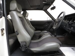 Remote control driver’s door mirror, body-coloured grille, lamp bezels body-coloured, power assisted steering, front and rear spoilers, tailgate wash/wipe, tinted glass all round, ammeter and oil pressure gauge, tachometer, quartz analogue clock, courtesy lights, perforated black headlining, front reclining Recaro seats, three-spoke leather covered steering wheel, tilting/sliding steel sunroof, boot light, instrument brightness control.