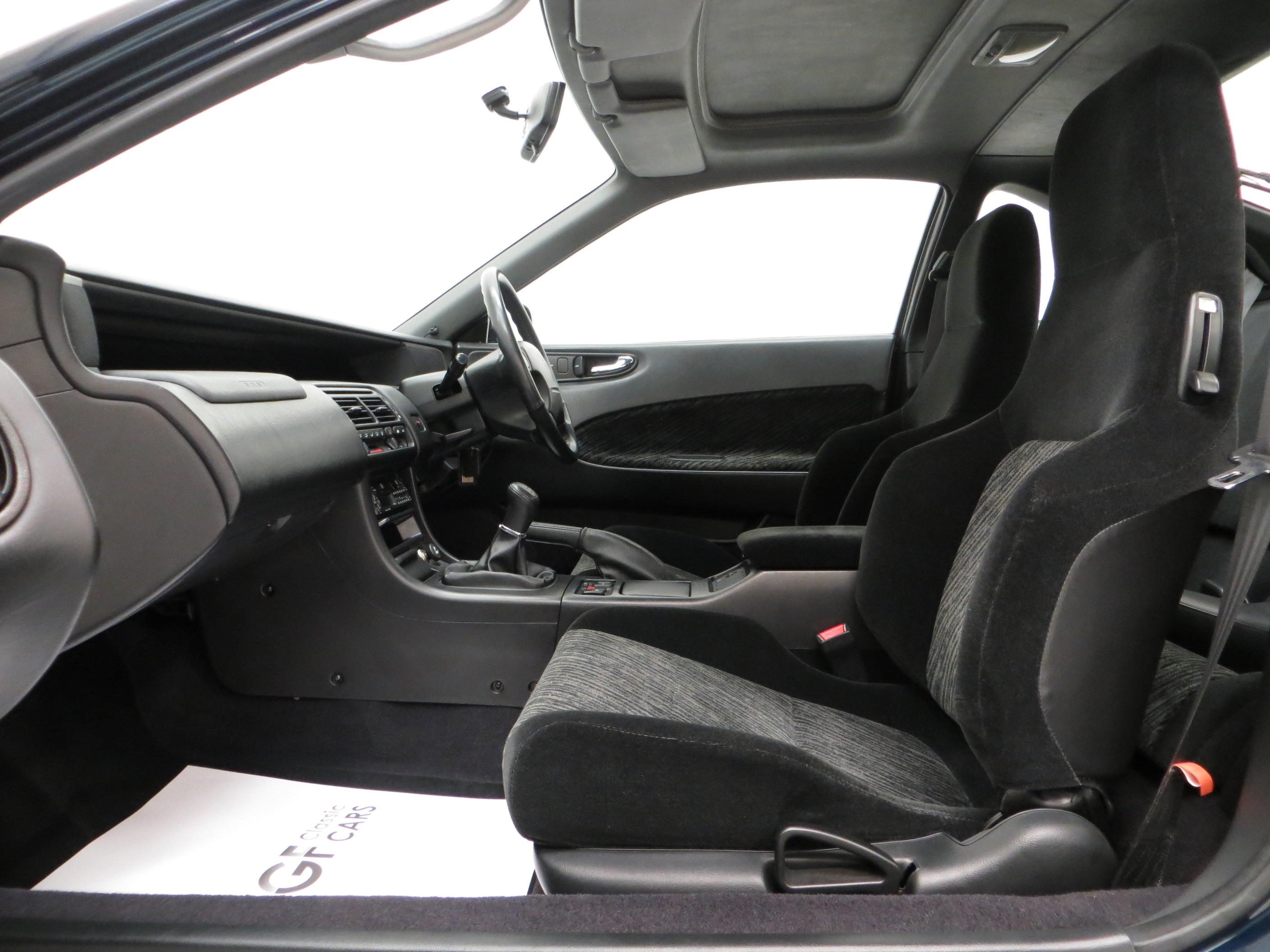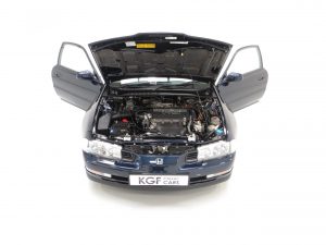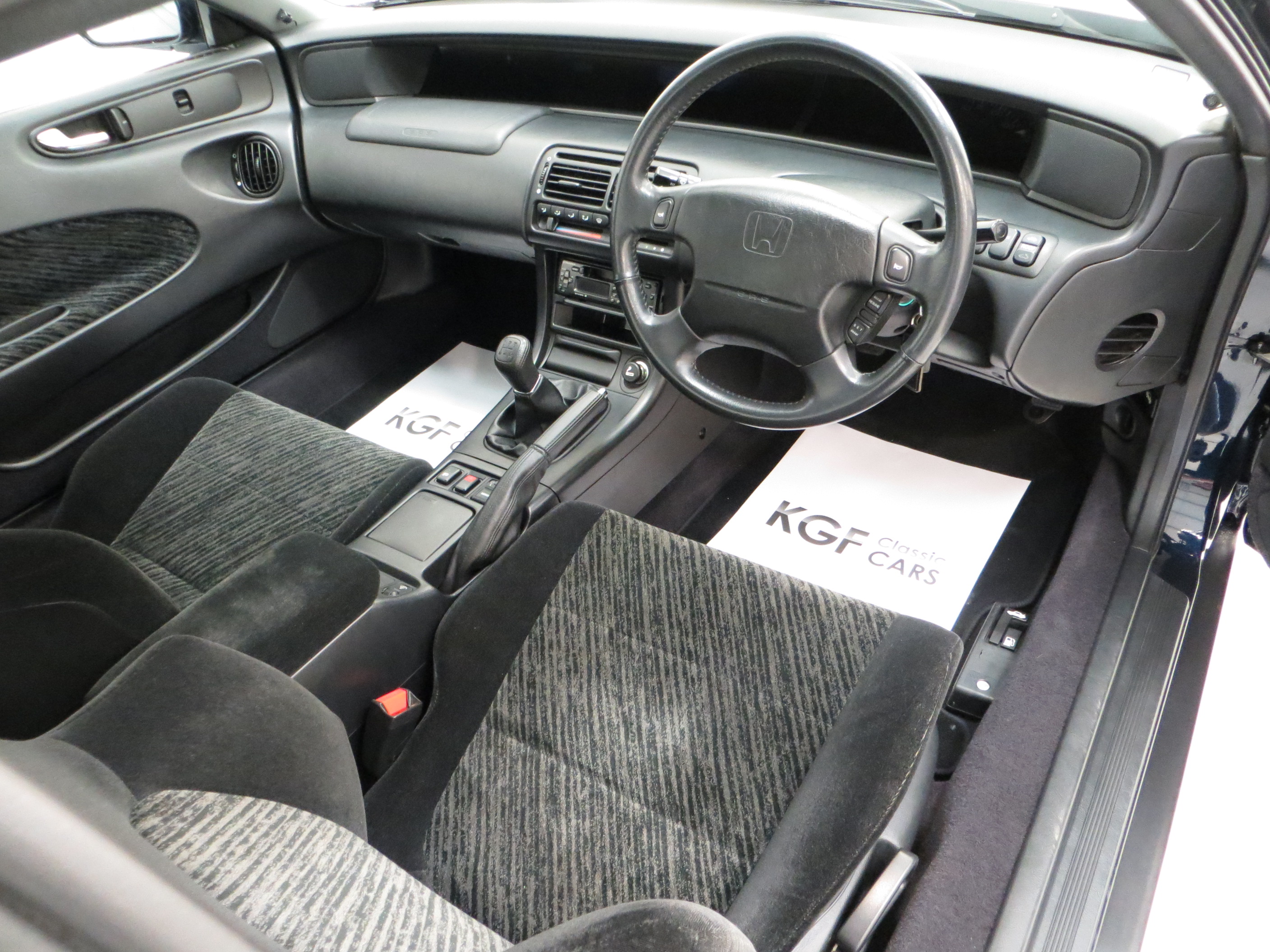 The aerodynamic curvaceous lines of this top of the range Forth Generation Honda Prelude are beautifully accentuated by the Pacific Blue Pearl paintwork, (Code B-68P). The fastidious long-term gentleman owner insisted on strict garage storage, he was truly fanatical over his pride and joy and even fitted genuine Honda headlamp guards upon purchase. The paintwork boasts a deep glossy shine and uniform finish, and all factory panels are beautifully straight with even shut lines. Small age-related markings and touched in stone chips to the original paintwork are only very minor, and there is a small blemish to the sunroof edge and a scratch to the driver’s door mirror. All trim sections are immaculate and the supplying Honda main dealer number plates remain fitted. An amazing preserved and unmolested example, without question one of the best examples in existence.