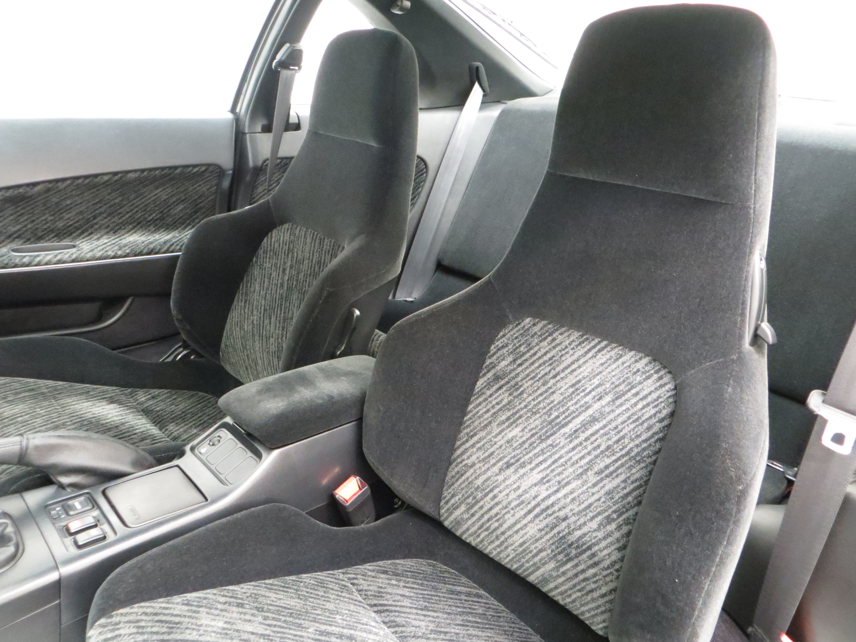 The futuristic cabin of this sporting Prelude was hugely ahead of its time with Fluorescent Light Tube gauges and sweep-across cockpit, a very distinctive design. The plush figure-hugging sports seats in Graphic Black Moquette, (Code Type-A), are as new with no rips, sagging or UV light damage. Turn the key and you are treated to an exciting array of bright lights and graphics, perfectly positioned to inform the driver of vital readings as well as the all-important 4WS light extinguishing as it should after initial start-up. Standard in every respect, except for a Bluetooth Kenwood stereo and tailored Prelude floor mats have been fitted from new. Originality seekers will note colour code and build stickers in the door shuts, boot and under bonnet, as well as factory etching to all glass panels. To find such an unmolested and preserved example is very rare indeed, this is a really special car.