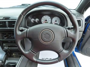 Phenomenal. Producing 208bhp is the 2-litre quad-cam turbocharged engine which is capable of catapulting the Terzo from 0-62mph in just 6.4 seconds and a top speed of 144mph. The genuine Subaru standard twin tailpipe exhaust system produces precisely the right sound and legendary burble. The engine bay is standard and very clean with the Fuji Heavy Industries Ltd. VIN plates intact along with all other labels, stickers and tags. The 5-speed short throw gear change maximises full use of the power.