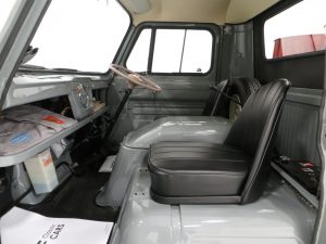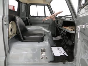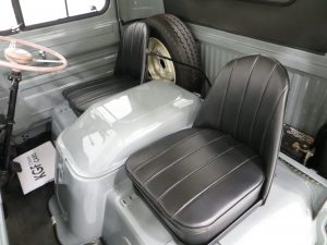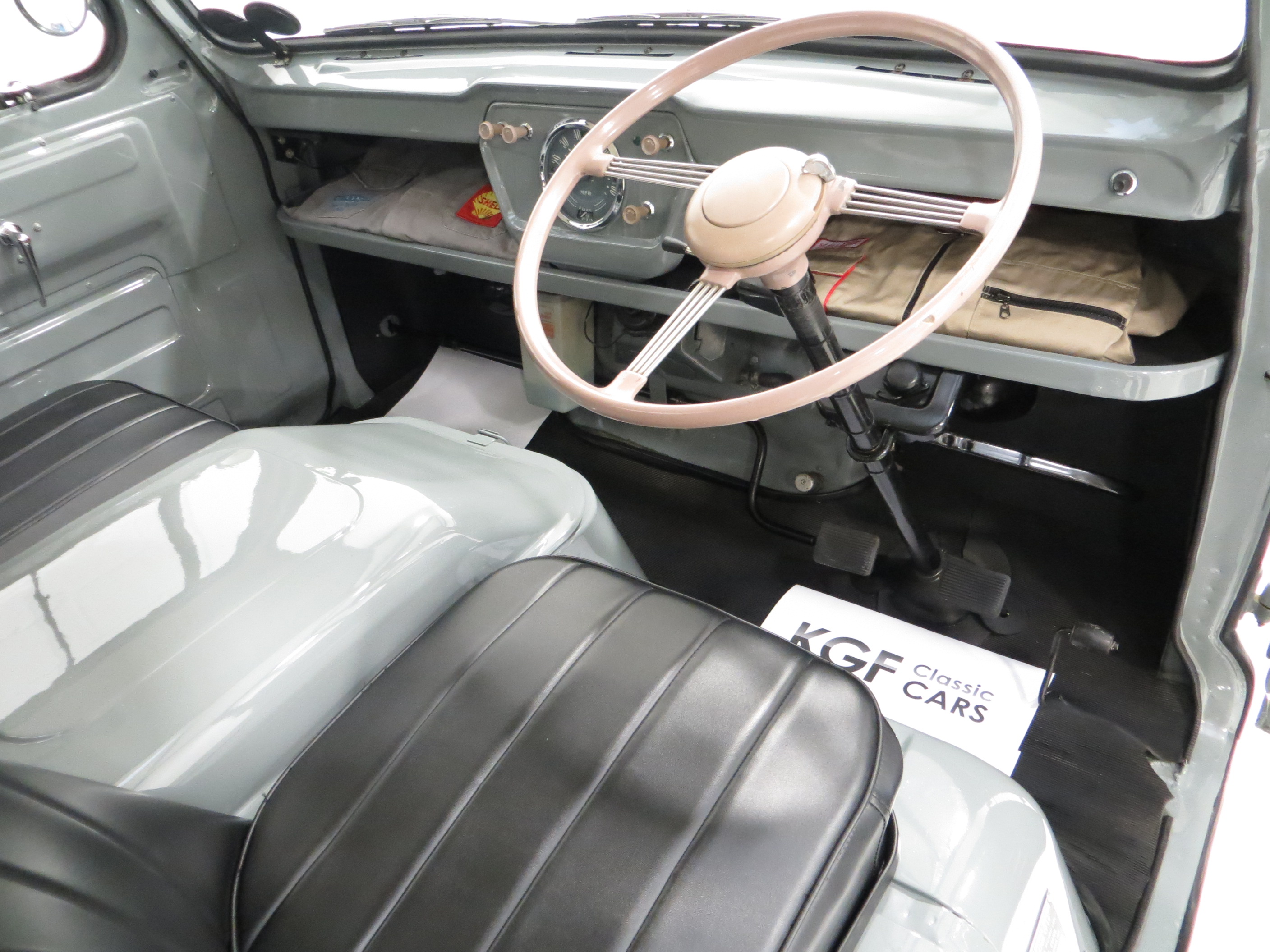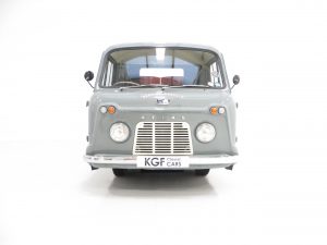 Amusingly, this example is specified to a high standard with factory options to highlight just how sparse commercial vehicles used to be, where even a passenger seat and second windscreen wiper were extra! The driver and optional passenger seat are finished in Black Vynide washable coverings and are pristine. A reflection of the sparse trim is highlighted by an expanse of painted metal which thankfully matches the Pearl Grey exterior both in terms of colour and excellent finish. Originality can be appreciated in the factory steering wheel, floor mounted headlamp dipswitch, original knobs and the centrally positioned 5” instrument dial. The indicator switch mounted to the steering wheel centre remains fitted but has been bypassed to a column mounted unit. An amusing lack of ergonomic consideration is highlighted by the ignition, choke and starter pull switch located behind the driver on the engine cowl, and the huge wand like gearstick protruding clumsily from the same place! A wonderfully nostalgic place to be with an air of sympathy for van drivers of yesteryear and appreciation for the comforts we have today!