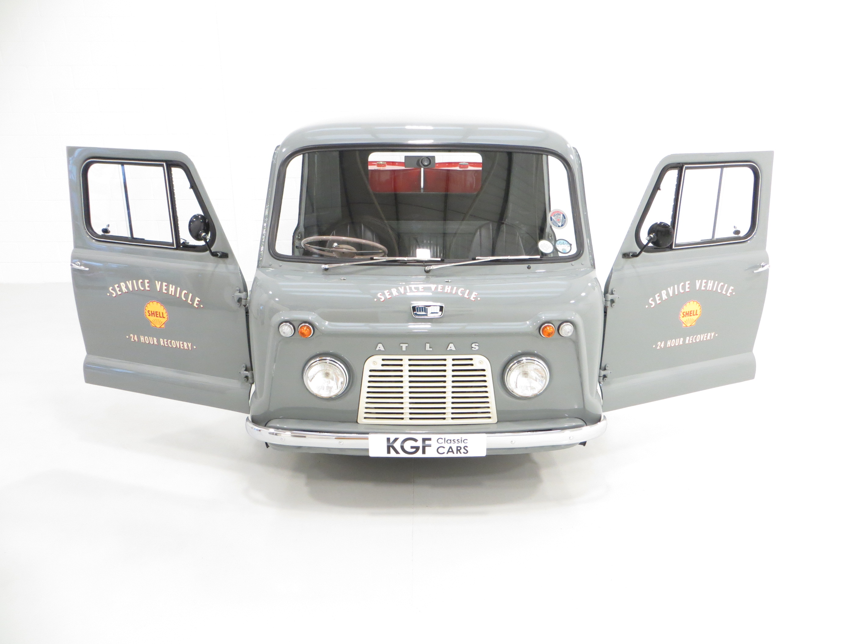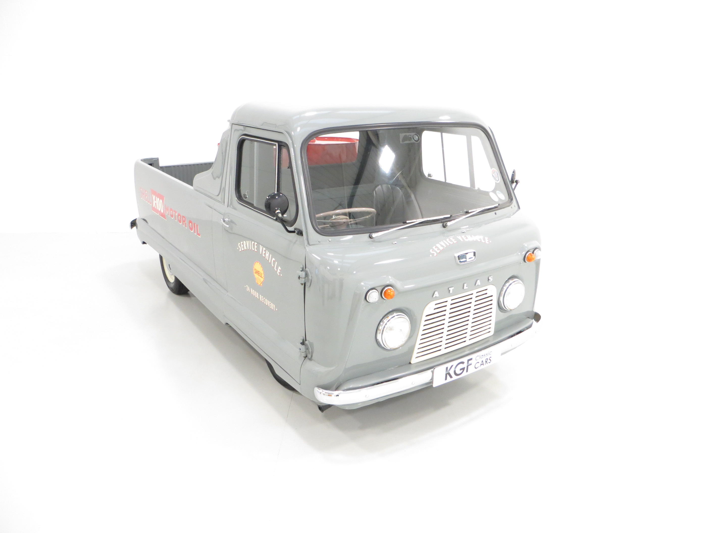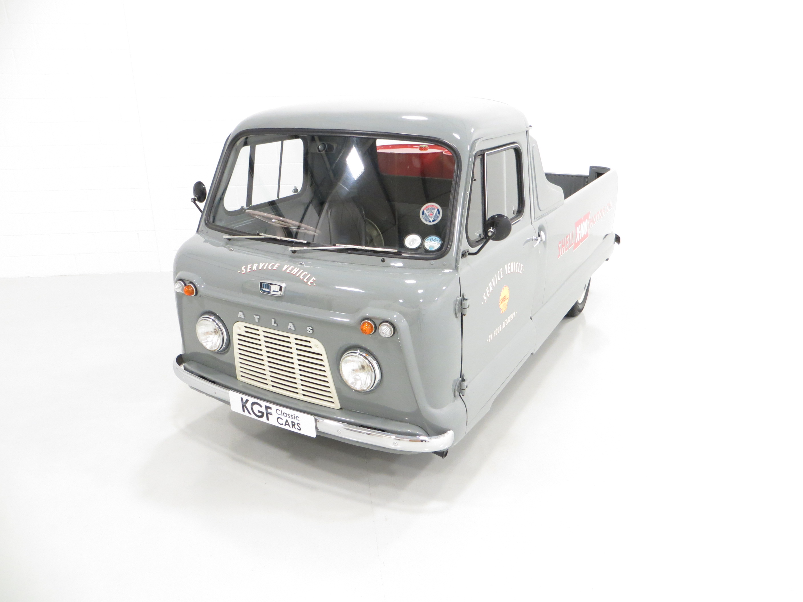 This delightful Standard Atlas Pick-Up, made in 1959, is a very rare surviving example of the light commercial van and pick-up range introduced in 1958. Like its competitors, the BMC J-Type, Morris J2, Ford Thames and Bedford CA, the Atlas utilised engine and running components from the passenger vehicle within the manufacturers range, in this case the Standard Ten. Finished in the original colour of Pearl Grey, this fantastic pick-up has been recreated as a Shell Service vehicle to amazing effect. The paintwork and period decals are finished to a very high standard and two immaculate oil drums in the goods floor protected by rubber matting complete the look. Attention to detail is superb with all original badges fitted and the trim sections and chrome in brilliant order. With classic commercials vehicles highly sought after and in short supply, this rare Atlas Pick-Up is guaranteed to attract much admiration at shows.