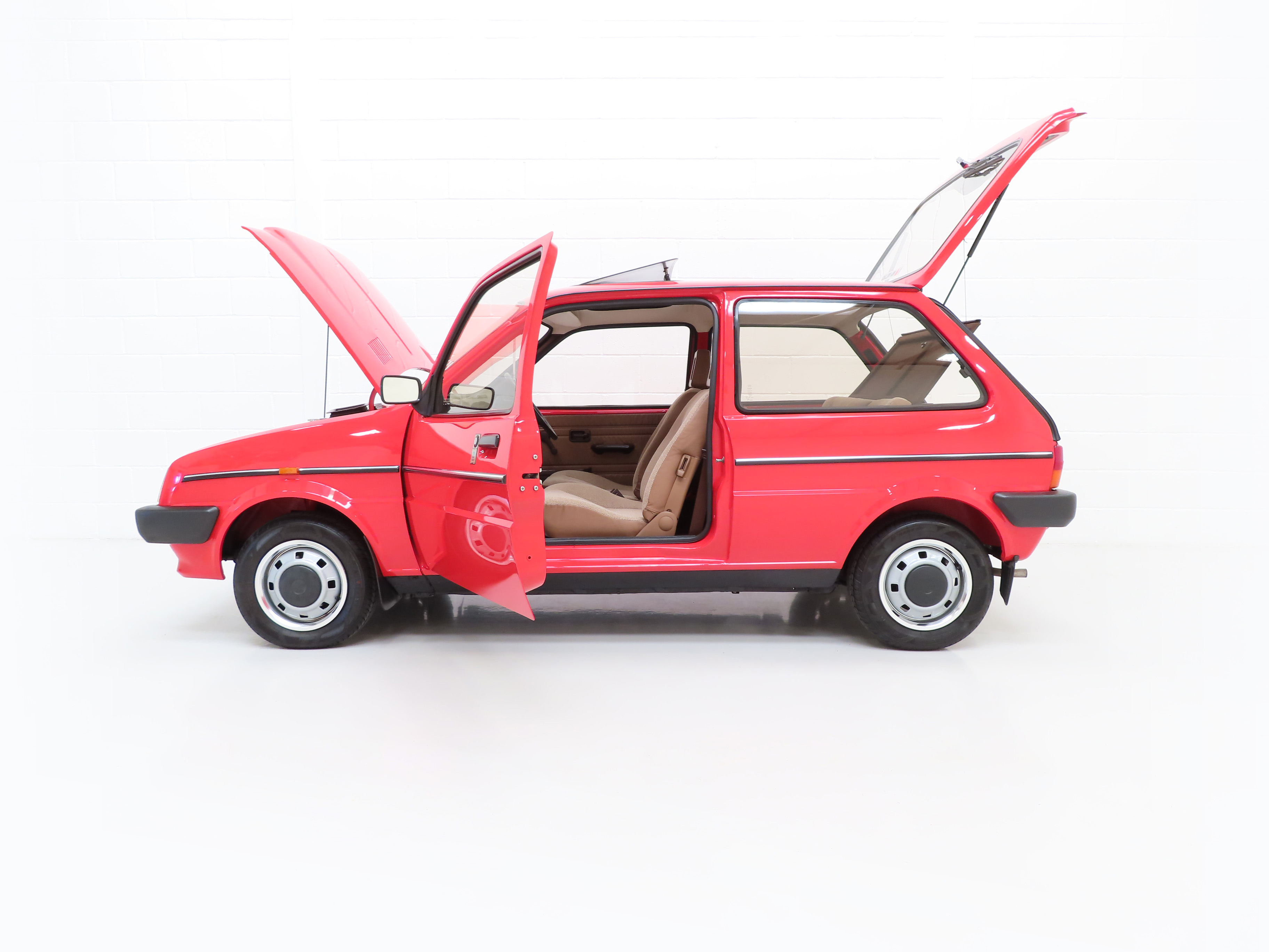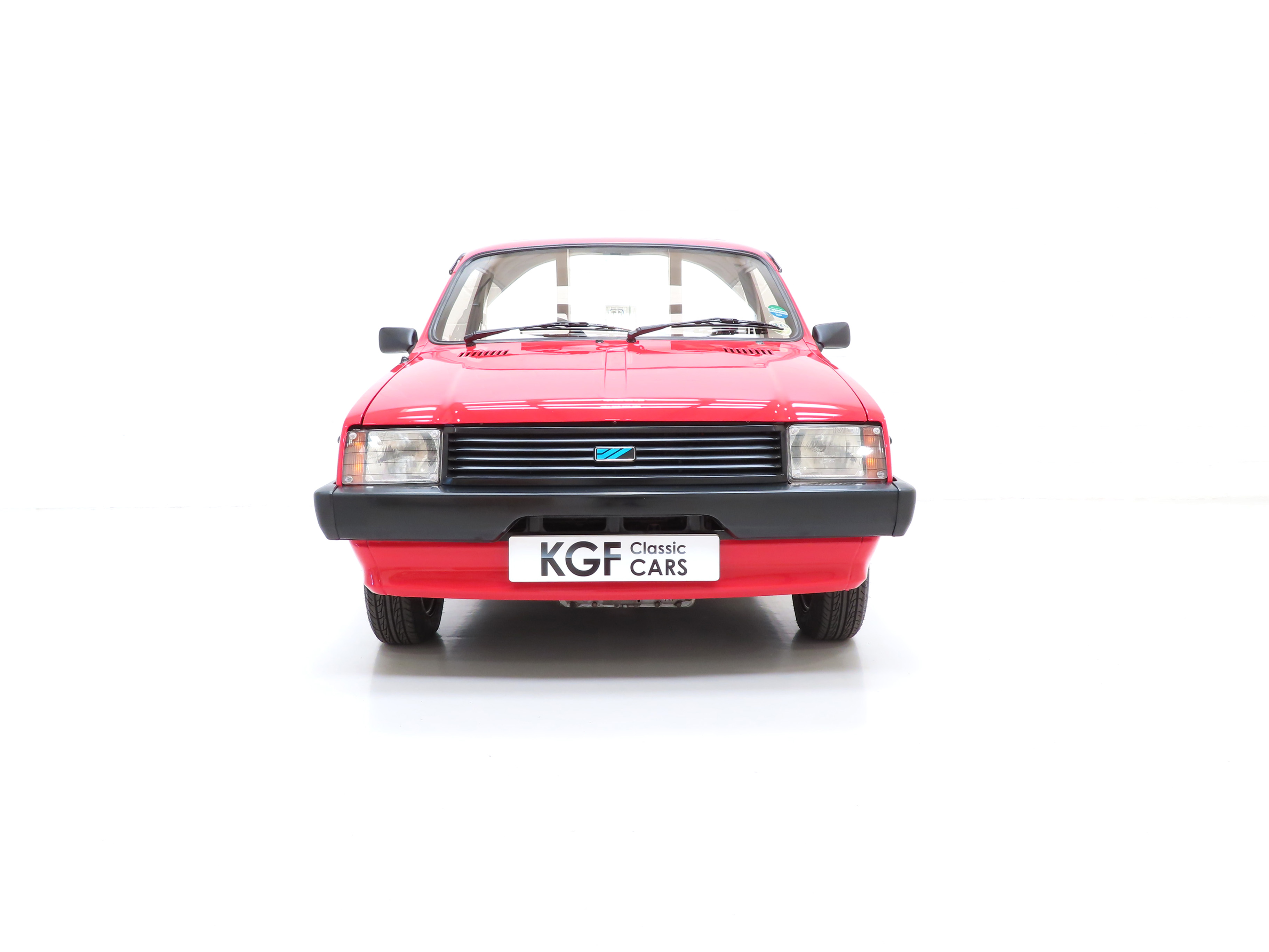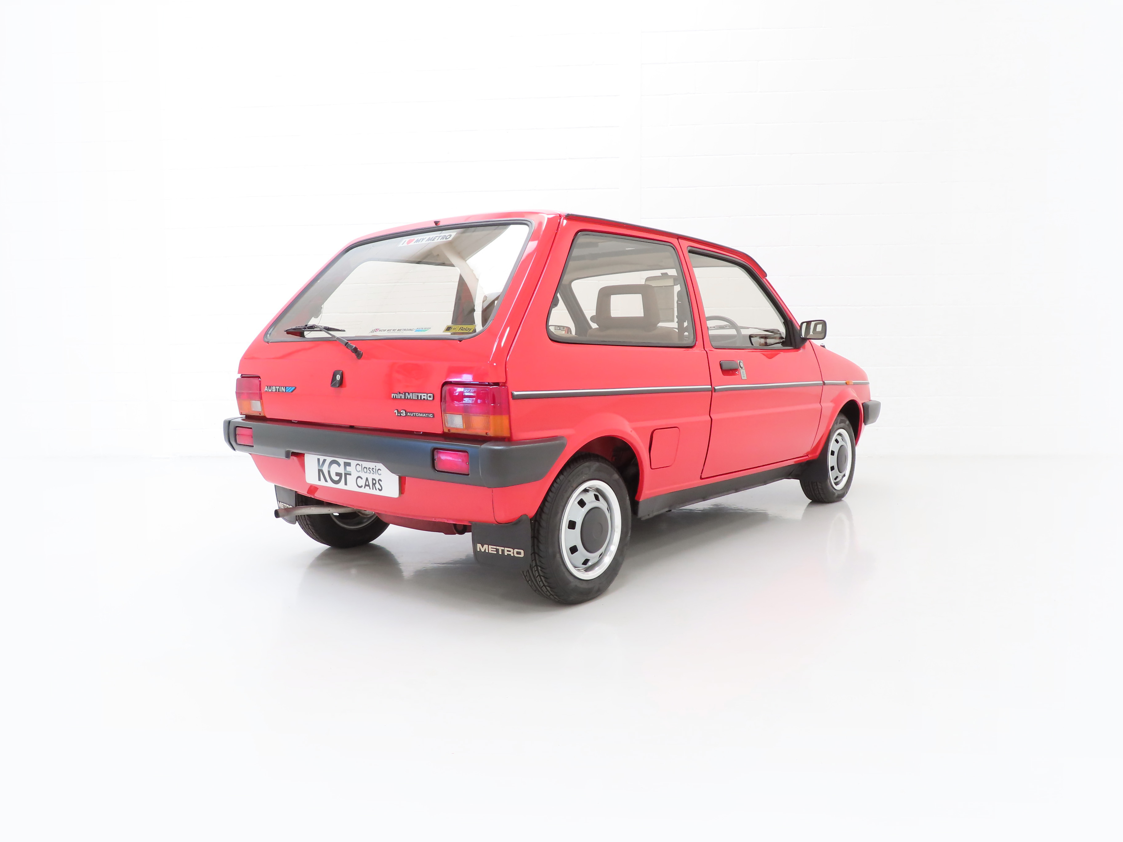 Finished in stunning Cinnabar Red, (Code CMT), this fantastic Mk1 Metro is every inch a rare surviving delight and boasts a bright unform finish to the original paintwork. Having covered just 35,022 miles from new, all trim, lights, glass and rubbers are in fabulous order and supplying dealer number plates, window stickers and etched glass are fitted. Even the genuine Metro headlamp protectors remain, a highly prized set alone! Some touched in stone chips, scratches and dings are visible upon close inspection but do not detract from the cars very impressive presentation and left to uphold originality. The underside is in superb order with detailed wheel arches and no welding or repairs to the body evident anywhere. Once a common sight on our roads, this fantastic example really does stir up nostalgia and represents a wonderful opportunity to the collector and enthusiast alike.