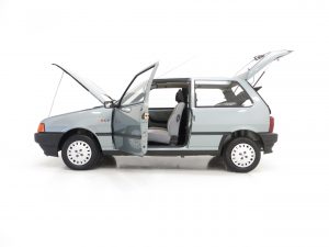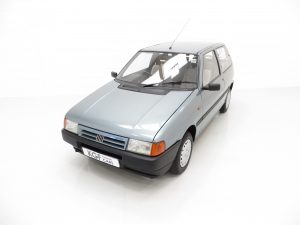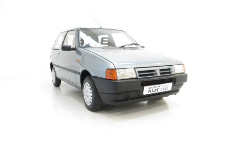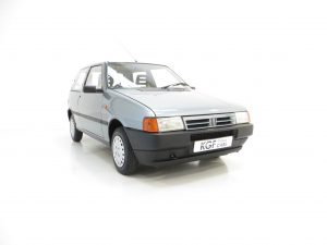This ultra-chic classic Fiat Uno 45 is the desirable Fire model and has covered a mere 21,981 miles with one former keeper! This superb example finished in Fiat Grigio Zermatt Metallic, (Code 630), has a deep polished shine and uniform finish to the factory paintwork. The underside is in amazing order and all panels are completely free from corrosion, including all common Uno areas such as doors, boot floor and scuttle. Minor small and shallow dings can be seen to the lightweight side panels, insignificant but worthy of mention. All trim sections are fully intact, and the supplying Fiat Dealer number plates, rear screen sticker and tax disc holder remain fitted. Italian superminis of the 1990’s held a certain undeniable charm, and this super low mileage Uno Designed by Giorgetto Giugiaro’s ItalDesign company is no exception.