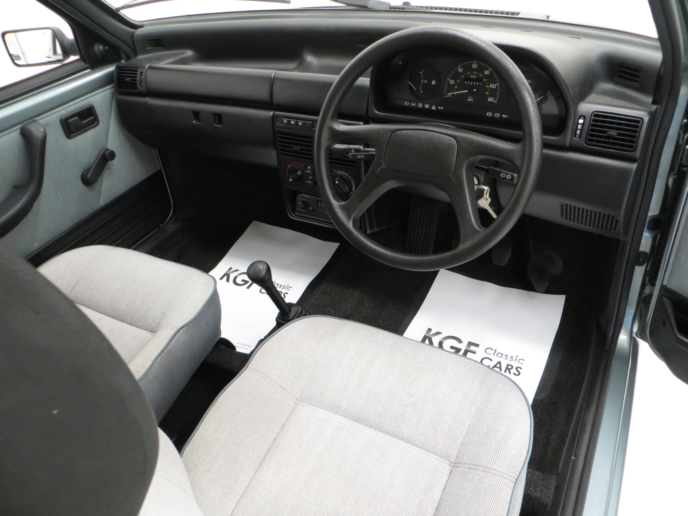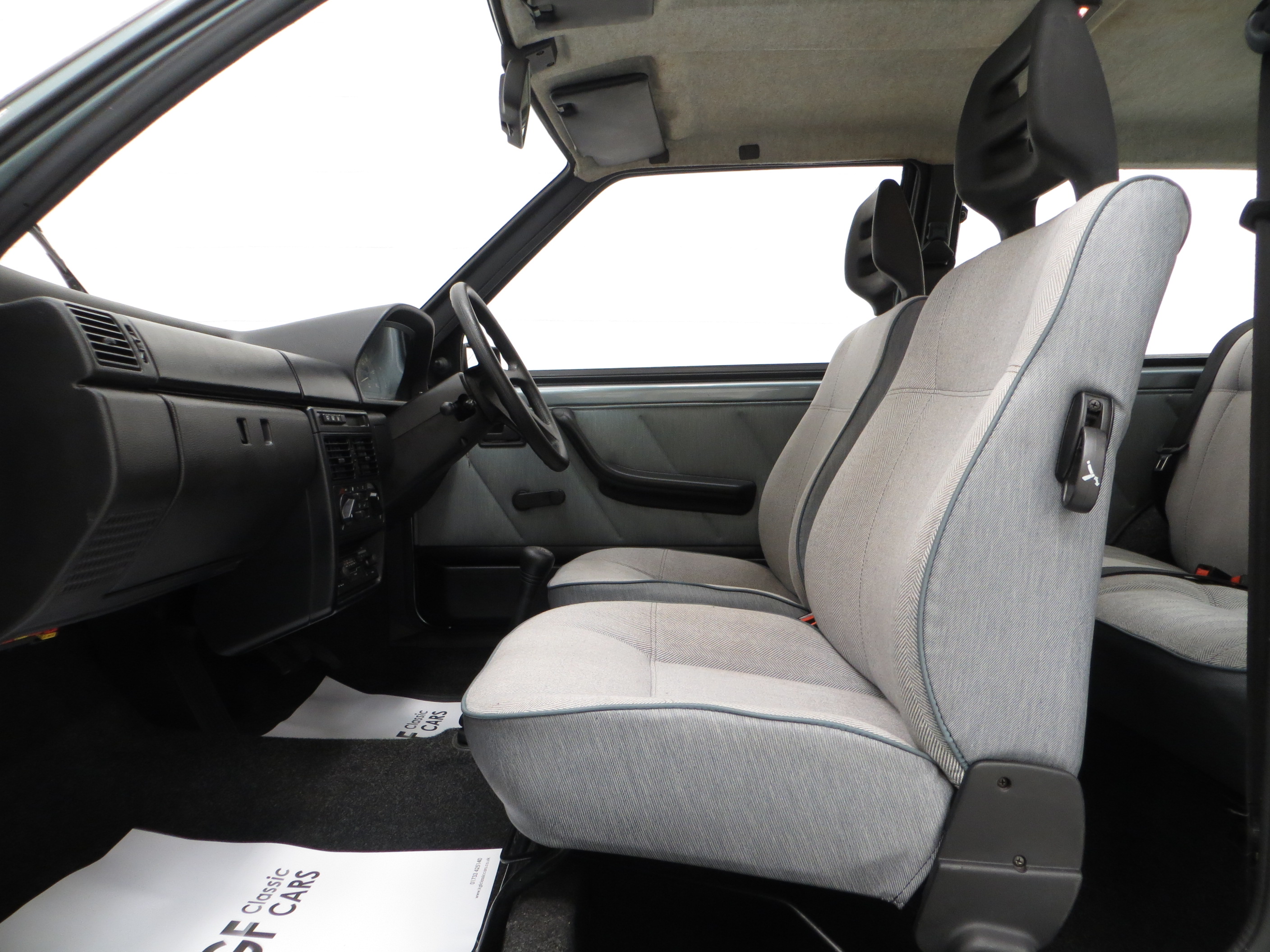 PVC underbody protection, plastic front wheel arch liners, remote adjust twin door mirrors, rear fog/reversing lights, heated rear window, rear wash/wipe, opening rear side windows, water temperature gauge, reclining front seats, front head restraints, folding rear seat, height adjustable front seat belts, inertia reel front and rear seat belts, driver door bin, glovebox, rear parcel shelf, protective boot matting, Grundig 3049 stereo cassette.