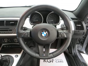 This range topping Z4 3.0Si Sport finished in stunning Silver Grey Metallic, (Code A08), has covered an incredibly low 33,168 miles from new. Commensurate with such low mileage and strict garage storage, the gleaming paintwork boasts a stunning finish with absolutely no dings, scuffs or damage and only very minor frontal stone chips. All trim sections and crystal-clear lights are as new and BMW main dealer number plates are fitted. The underside and all wheel arch apertures are beautifully clean. This muscular and imposing Z4 3.0Si Sport is a desirable model and the example presented here is far superior to the usual offerings. Beautifully preserved, a modern classic in the making.