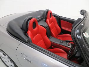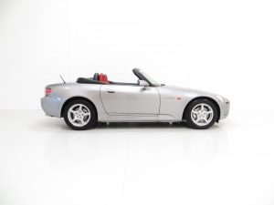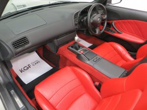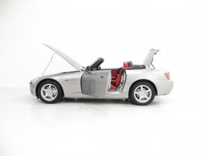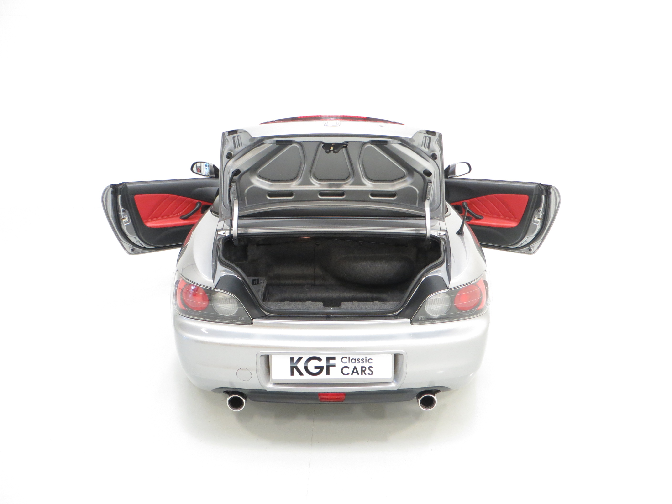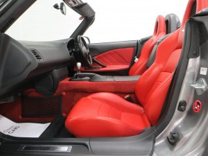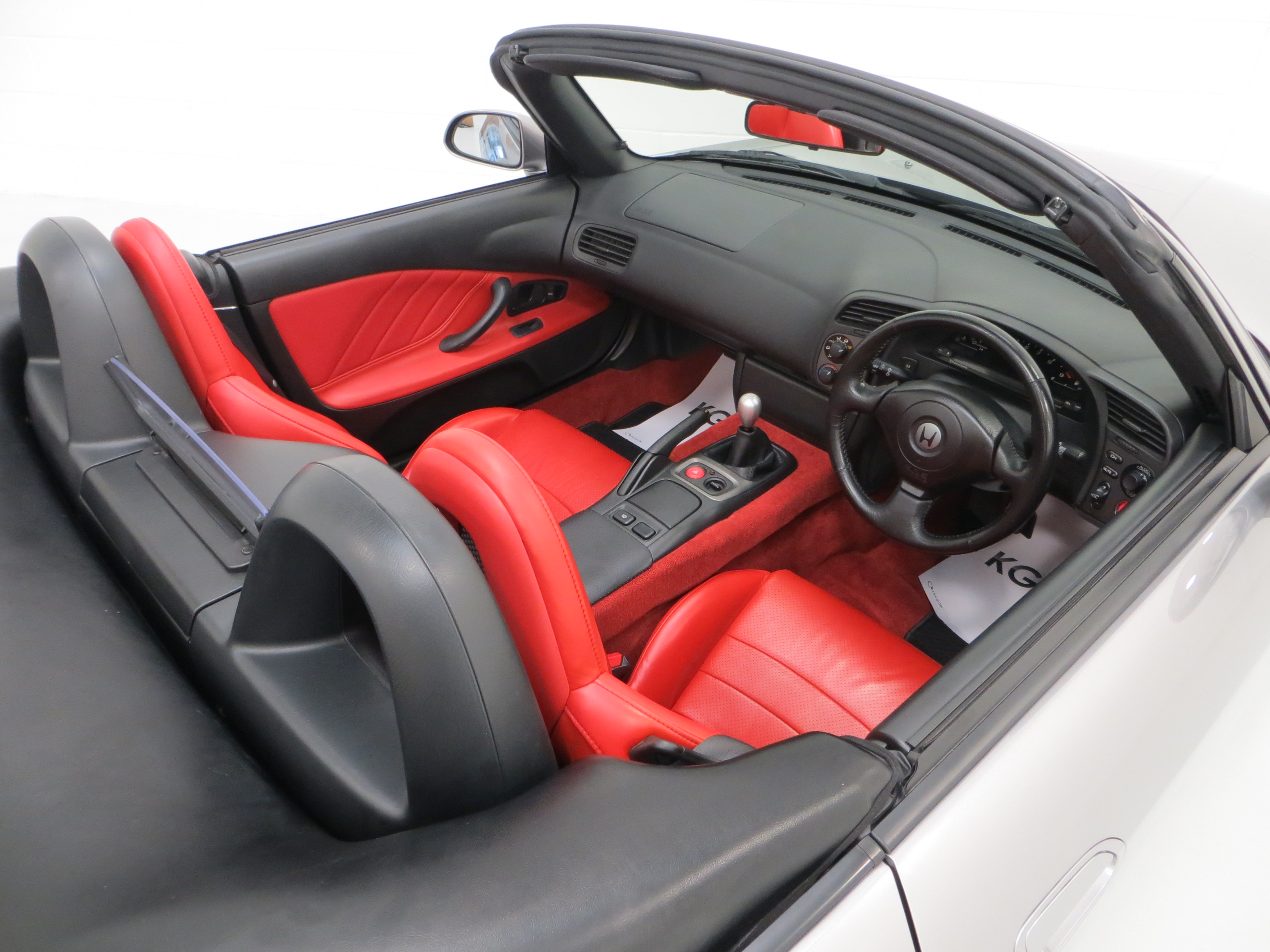 Finished in the official launch colour of Silverstone Metallic, (Code NH 630M), this drop dead gorgeous two seat sports car looks stunning from every angle. The paintwork boasts a beautiful metallic shine and uniform finish, commensurate with the incredibly low mileage of just 16,265 miles. All lightweight panels are beautifully straight and in preserved condition with only very few miniscule stone chips to the front and a tiny mark to the offside rear wheel arch, barely worthy of mention. The £845 upgrade claret electric hood with glass rear screen is quick and effortless and in pristine condition. The HID headlights are clear with no discolouration, as are the original factory fitted rear lenses and correct orange side repeaters. All trim sections and S2000 badges are as new and the supplying Honda main dealer service sticker and tax disc holder have been kept. This exceptional example represents an original, unmolested and truly cherished car that has firmly cemented Honda’s repute for innovation and precision engineering.