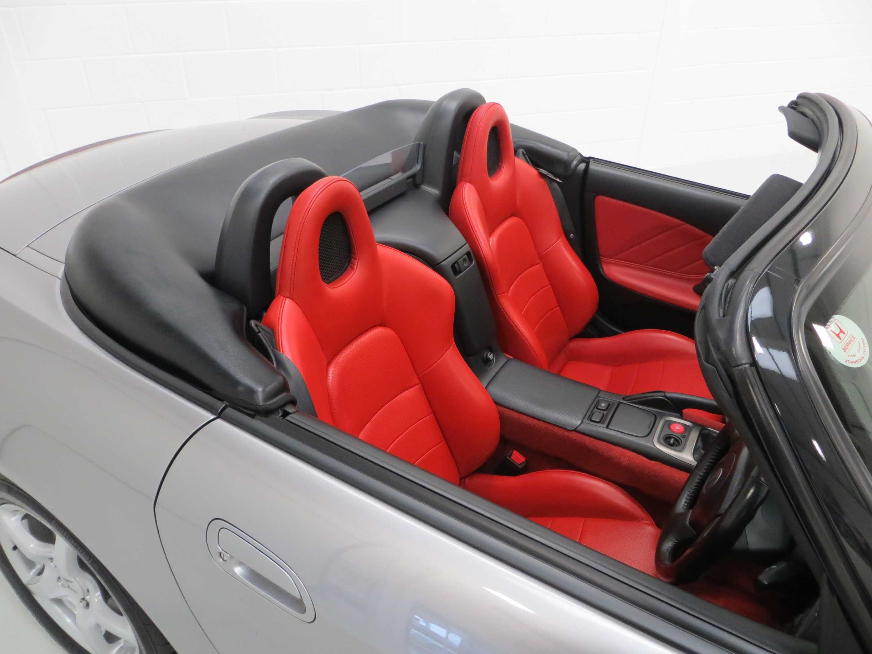 Side impact protection beams, seat belt buckle pre-tensioners, front and rear anti-roll bars, roll over protection, HID headlights, headlight washers, high level rear brake light, SRS airbags, electrically adjustable and heated door mirrors, bee sting aerial, remote keyless entry, air conditioning, alloy gear knob, leather wrapped steering wheel, drilled aluminium pedals, electric soft top with glass rear screen, tonneau, Honda 2SFO stereo, remote stereo controls. Dealer accessories; 6 disc CD changer, Honda tailored floor mats, rear headrest airflow screen, utility net.