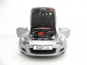 Underneath the bonnet is a 2.0i VTEC race bred engine. This sophisticated VTEC system changes the timing and lift of the valves to combine good torque characteristics at low revs with high power at high revs. A power output of 240bhp at an almost unheard of 8300rpm and 208Nm of torque at 7500rpm allows a blistering 0-62 time of 6.2 seconds and top speed 150mph. Factory stickers to the bonnet underside and immaculate engine bay as well identification plates, bulkhead chassis stamp and coloured PDI dabs confirm the absolute originality of this amazing example. The short shift 6-speed gearbox is impeccably precise and adds to the 9000rpm redline S2000 magic!