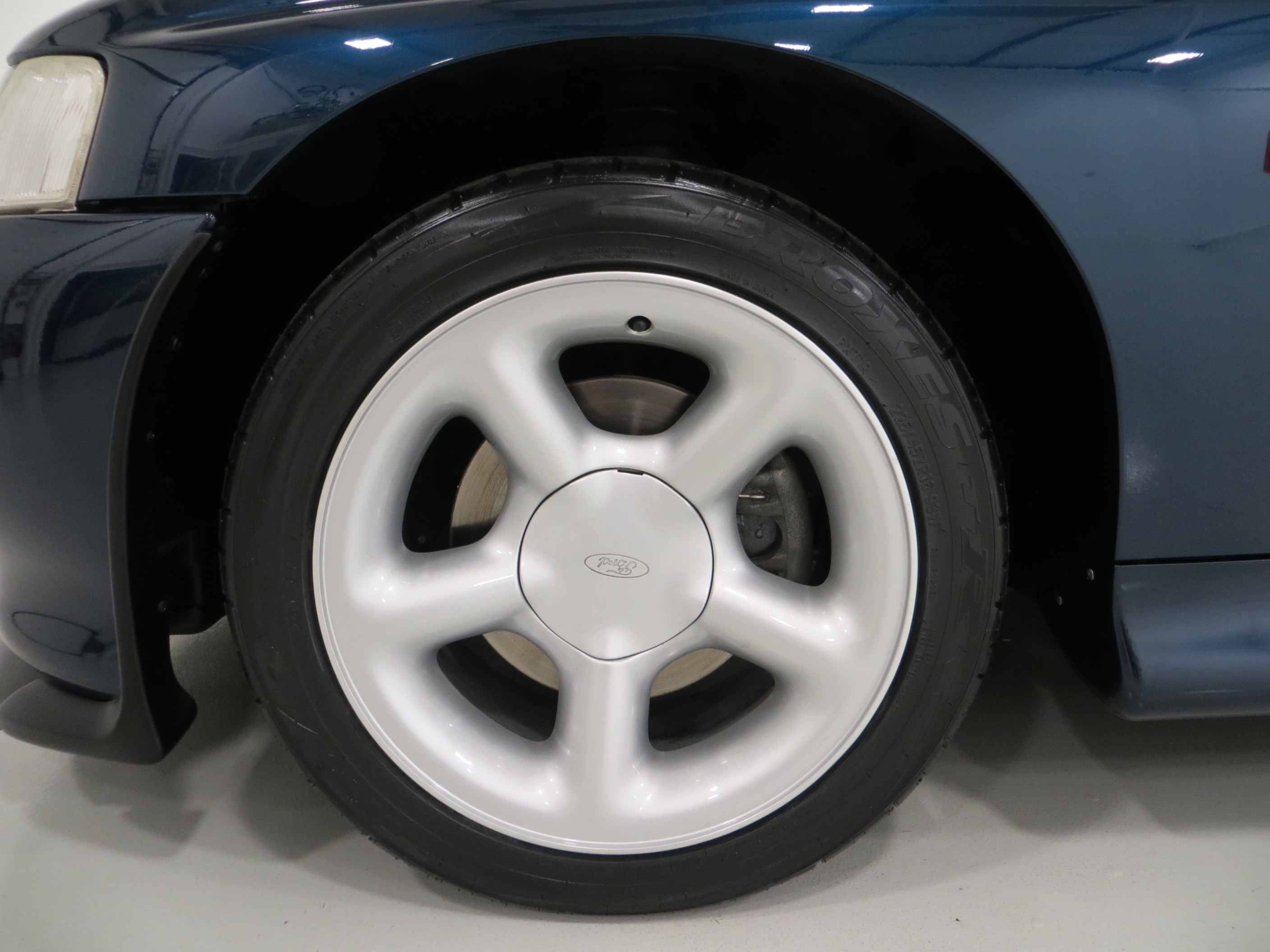 Genuine and immaculate Ford RS 8 X 16” five-spoke alloy wheels are shod in quality branded and matching 225/45 ZR16 tyres, fitted brand new in November 2018 and replacing the early Pirelli items. These are included with the sale. The space saving spare wheel is the unused factory Pirelli item with coloured banding and tiny nobbles still intact. Electrically-controlled ABS anti-lock system with two microprocessors and ventilated front and rear discs offer immense stopping power.