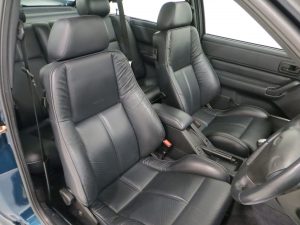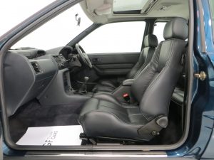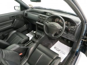 The breath-taking exterior of this Escort RS Cosworth is nothing short of magnificent. Finished in rare Petrol Blue Metallic, (Code C5), a colour only produced for 13 months. The paintwork boasts an impeccable shine, commensurate with a 25,933 mile, two owner cherished example with the second owner since the car was just two years old. A tiny rub to the passenger door mirror and miniscule frontal stone chips are visible on an otherwise outstanding finish. All exterior trim, lights, badges and rubbers are excellent and the correct Ford window stickers and Ford Security System stickers remain fitted as well as the supplying Ford Main Dealer number plates. The vulnerable to damage adjustable splitter to the lower front spoiler is fully intact. A preserved underside featuring a standard exhaust and original factory Motorcraft labels to suspension components will delight originality seekers. An amazing and unmolested example of this Ford RS legend.