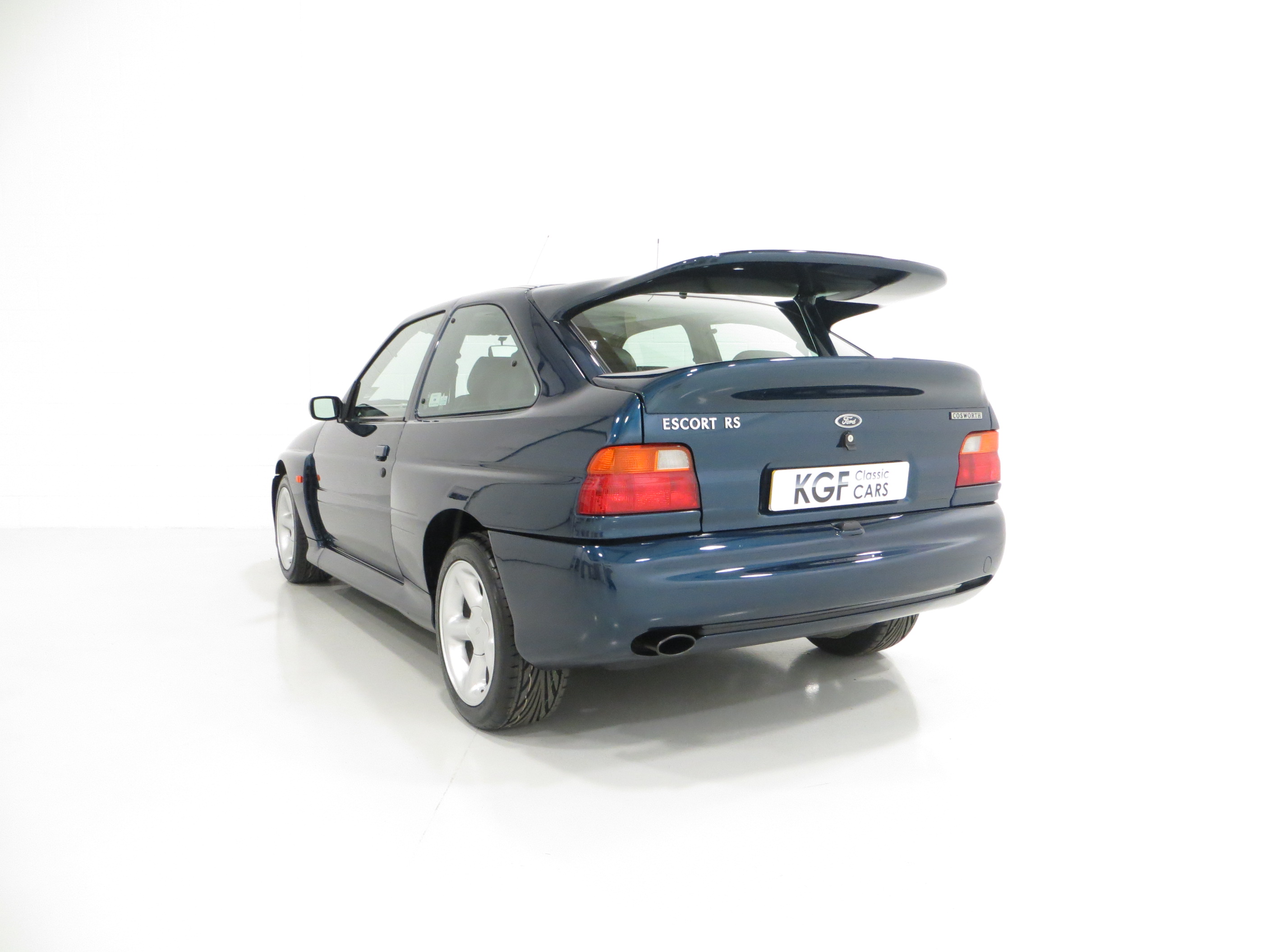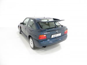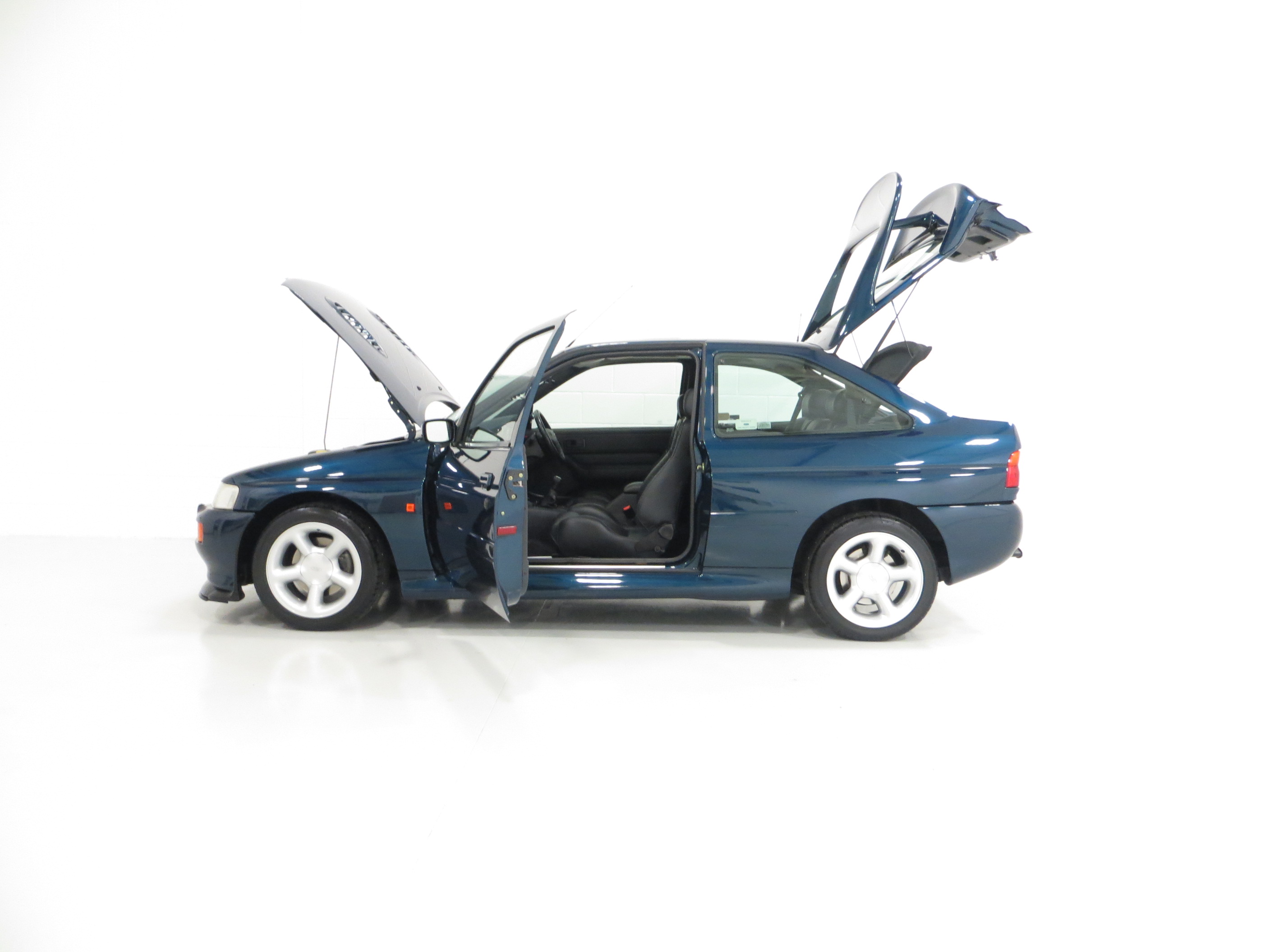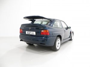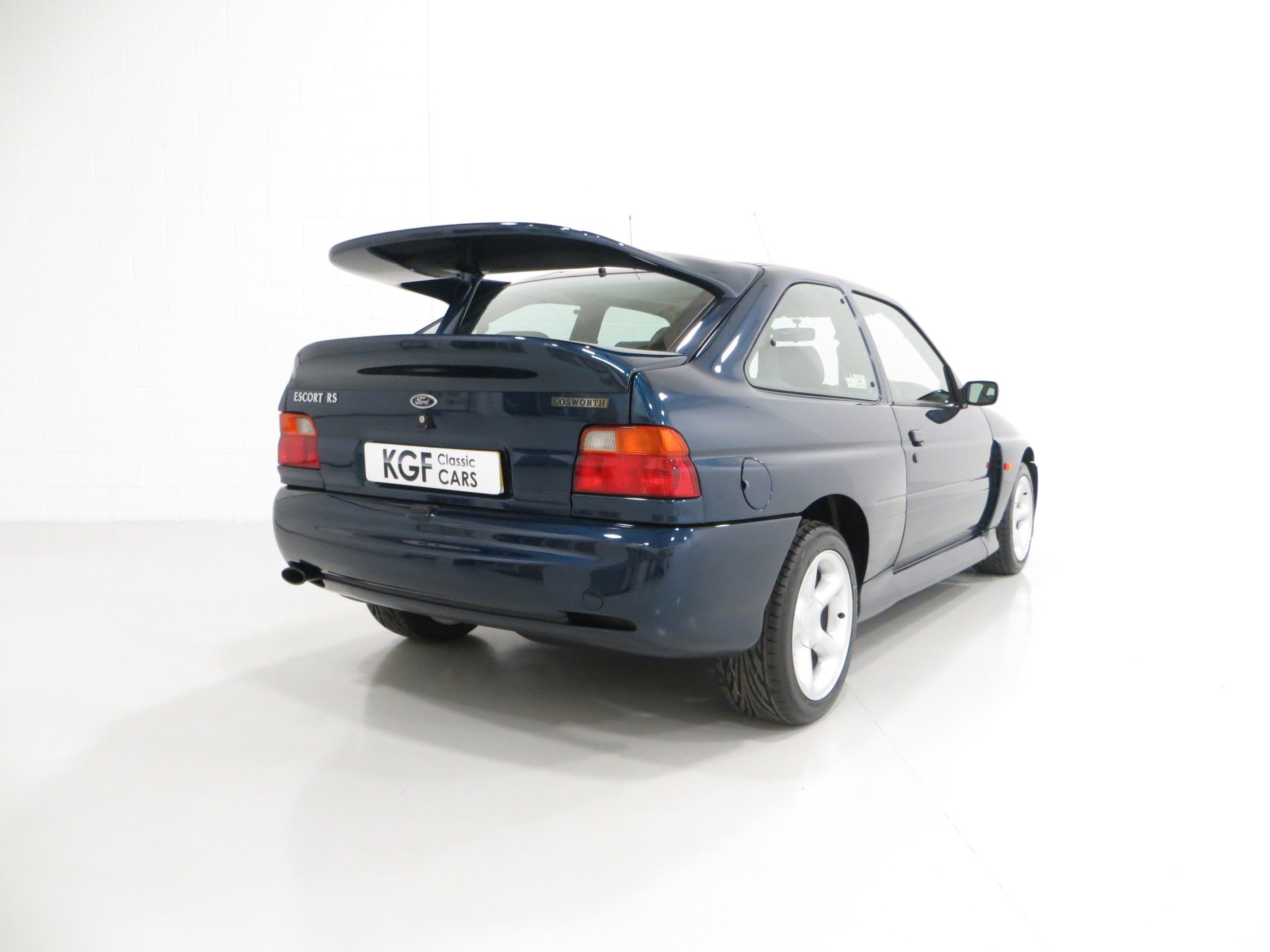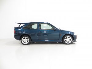 The Ford Escort RS Cosworth was a sports derivative and rally homologation special of the fifth generation Ford Escort. It was designed to qualify as a Group A car for the World Rally Championship. It was available as a road car from 1992-96 in limited numbers from Ford’s Specialist Vehicle Engineering, (SVE), team. It combines the hand-assembled engine expertise of Cosworth and the coach-building crafts of Karmann. In order to accommodate the larger Cosworth engine and transmission Ford developed the car around the chassis and mechanicals of its predecessor, the Sierra Cosworth. A very rare car with only 7,145 examples being produced. (Source Wikipedia, 1995 Edition One RS Brochure and the RS Owners Club).
