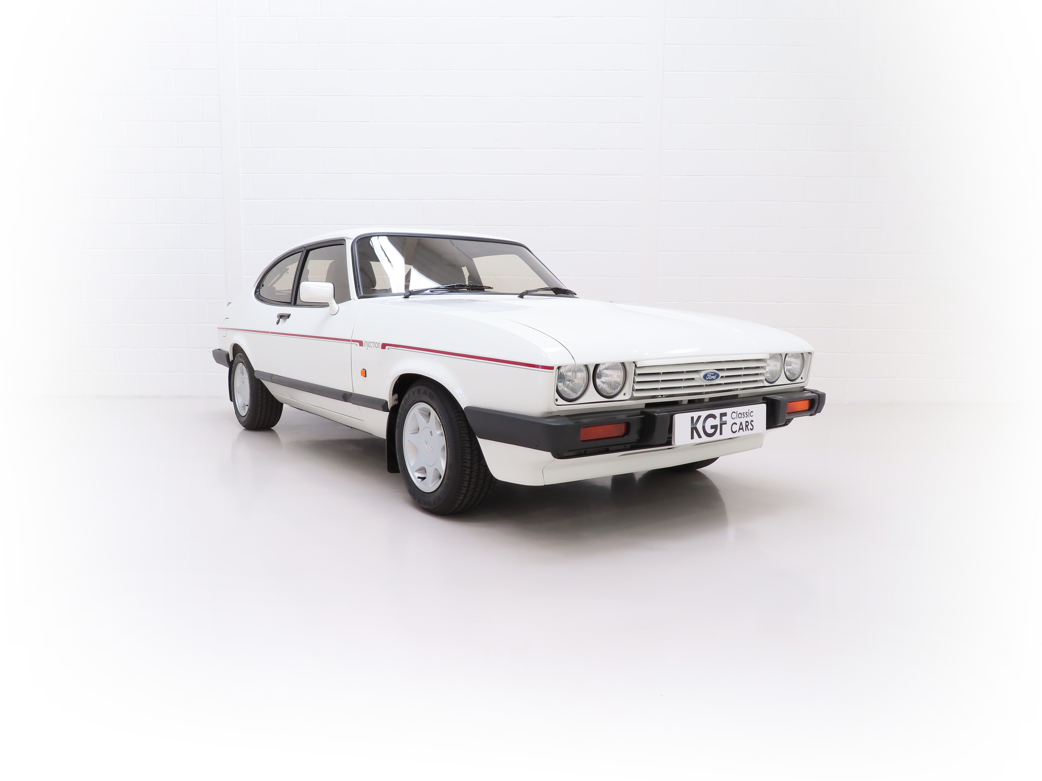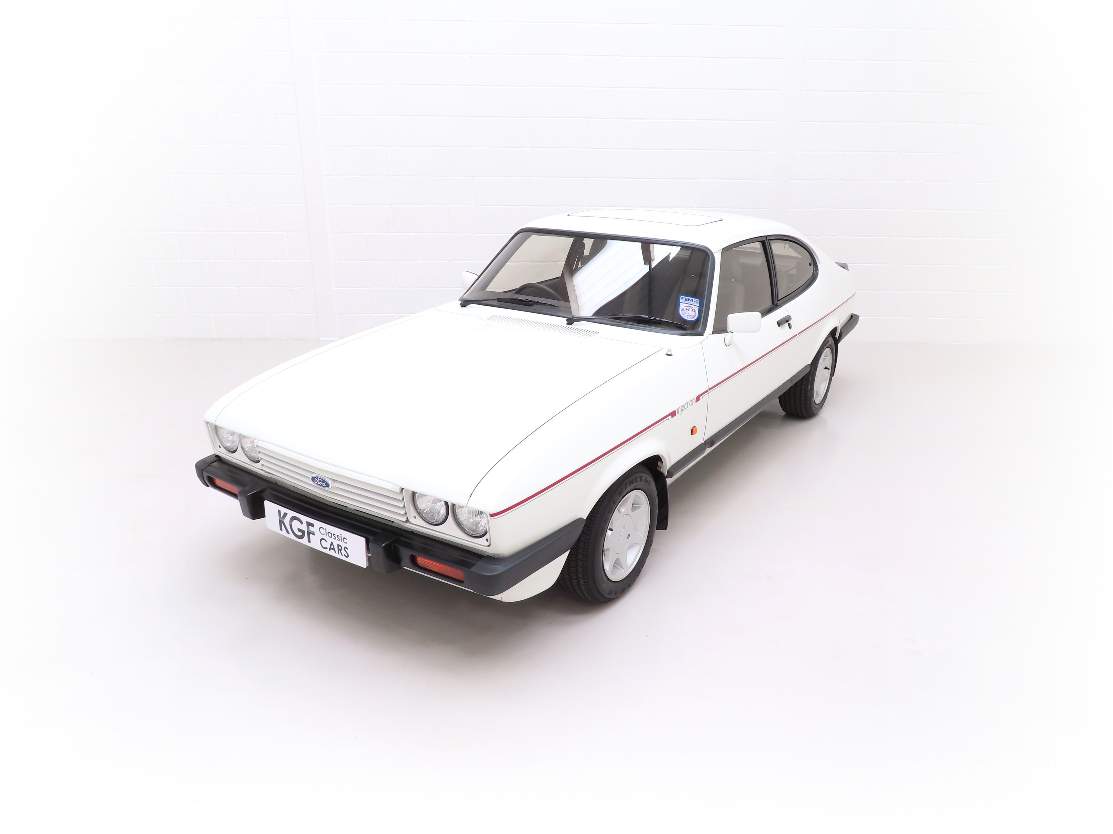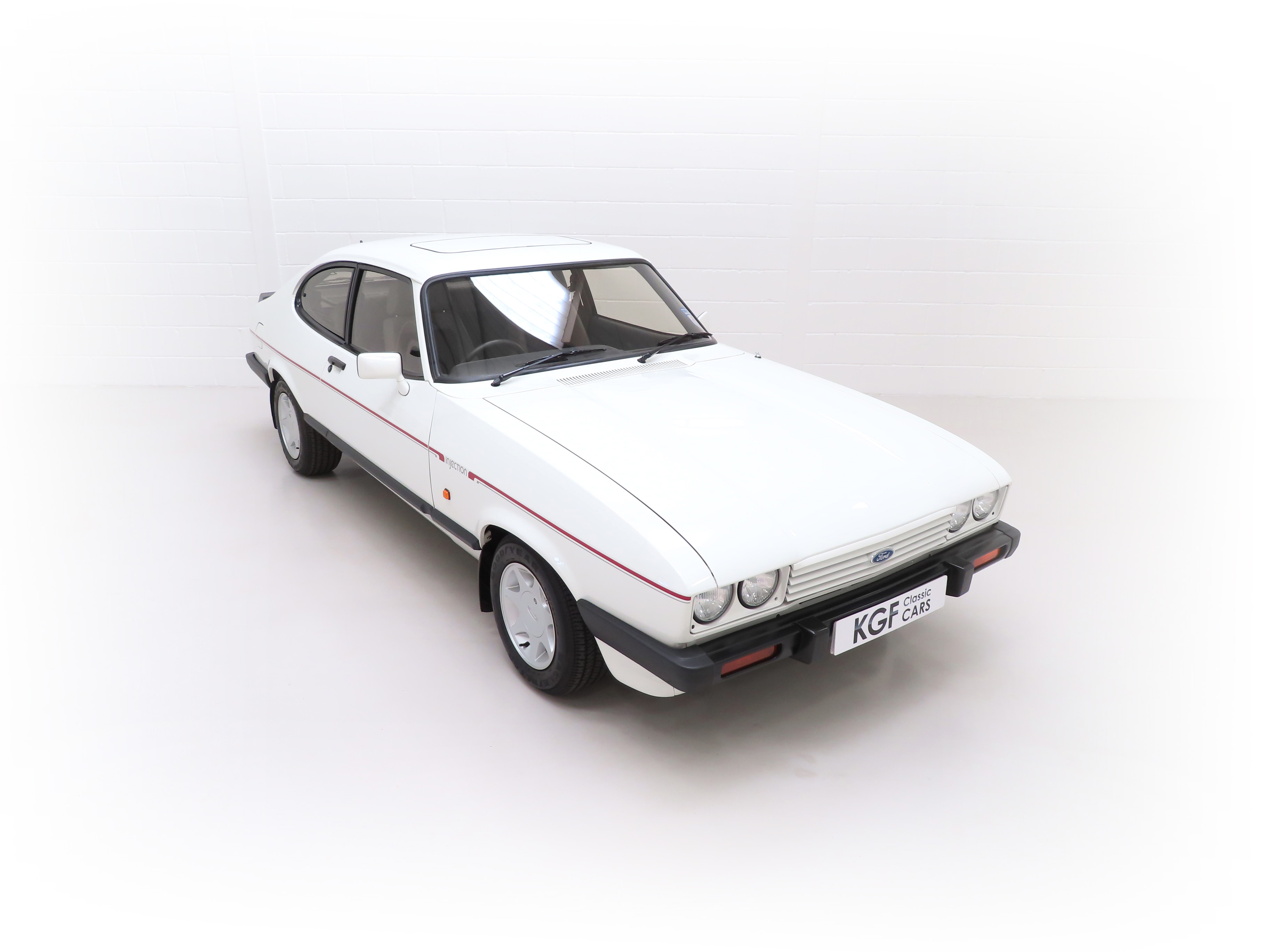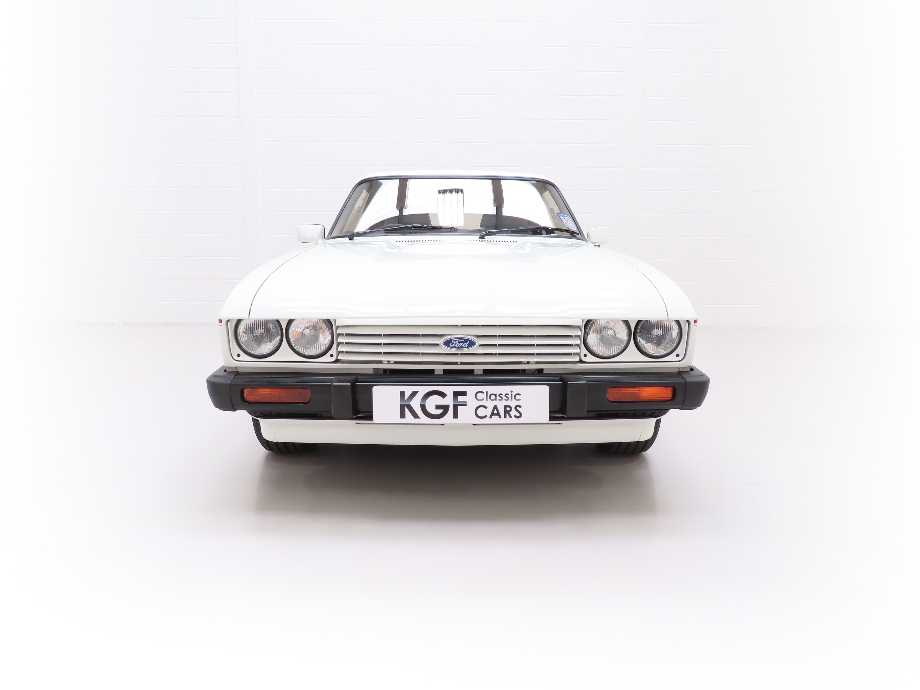 This spellbinding factory perfect Ford Capri 2.8 Injection is a champion in every respect having covered a warranted 585 miles from new with one custodian, Albert. Finished in striking Diamond White, (Code B3), it is difficult to fault this example without passing comment on Ford production control standards, such is the expert preservation of this miracle car. Stored in a dehumidified and centrally heated garage, every nut, bolt, clip and component throughout the entire car is exquisite with absolutely no aging. A benchmark car that will guide concours perfectionists on where every label, sticker, paint dab should be and how Ford engineers tightened the last bolt. All dealer branding remains fitted. Be prepared to experience the thrill of buying a dazzling new Capri!
