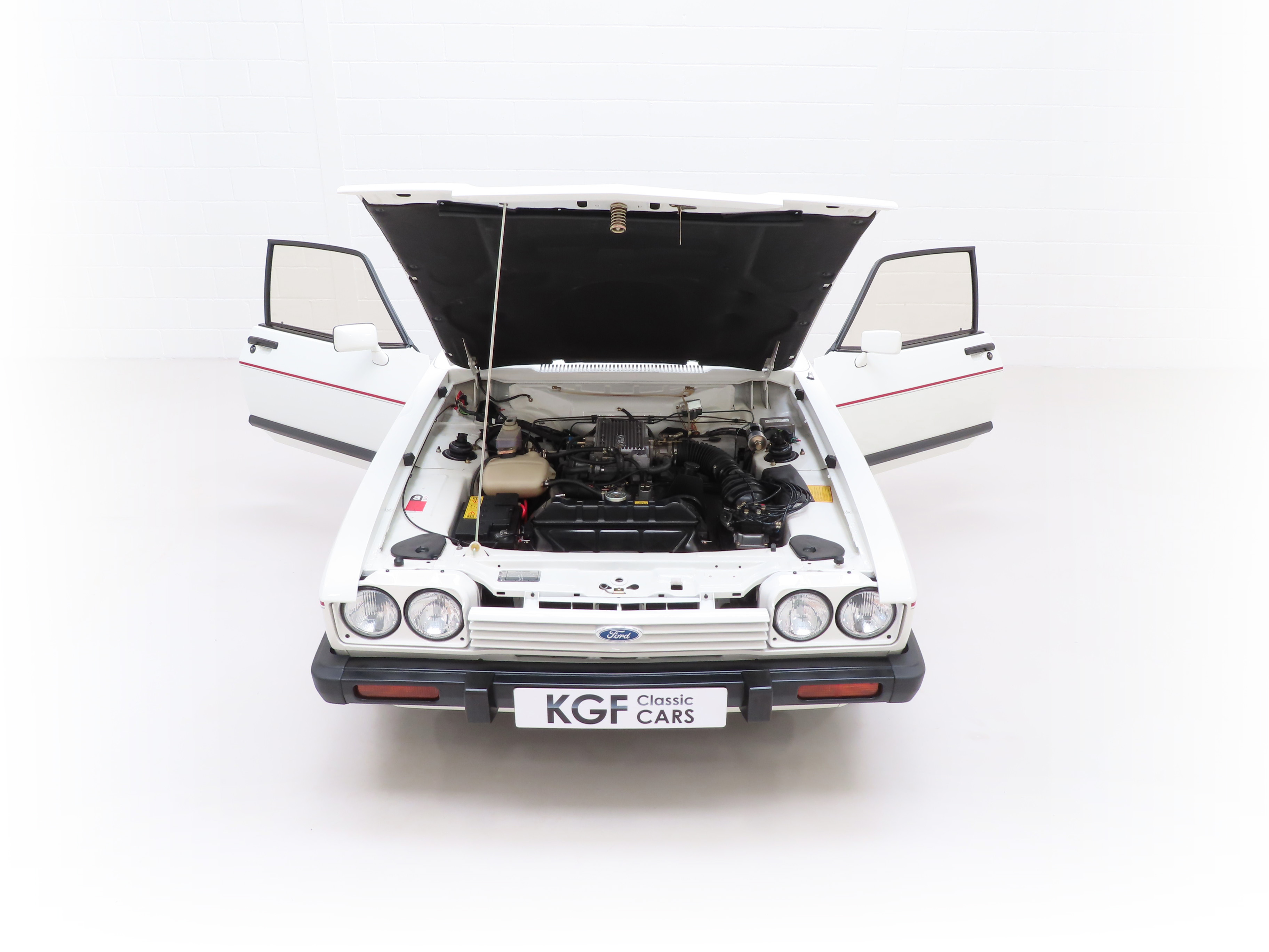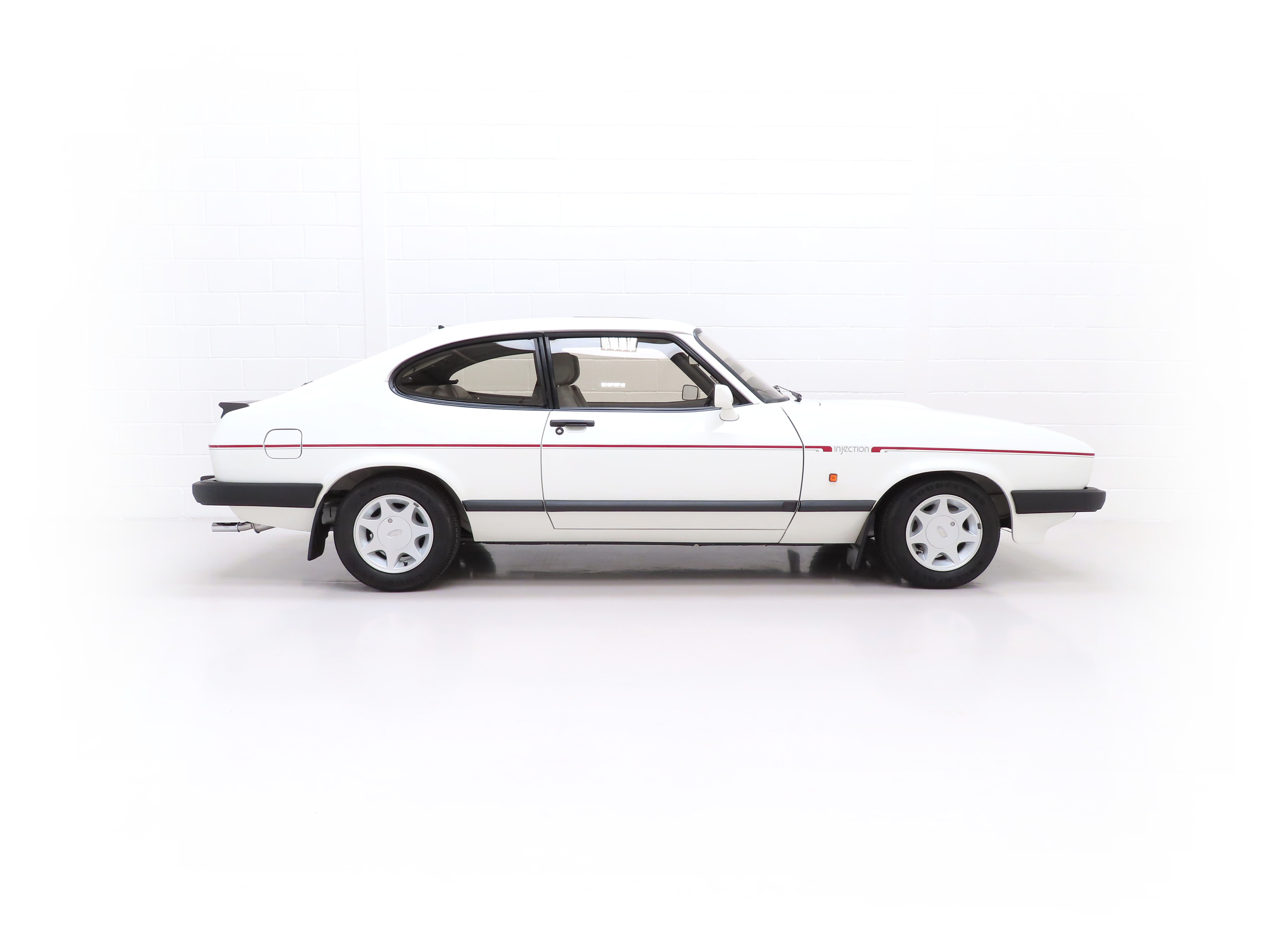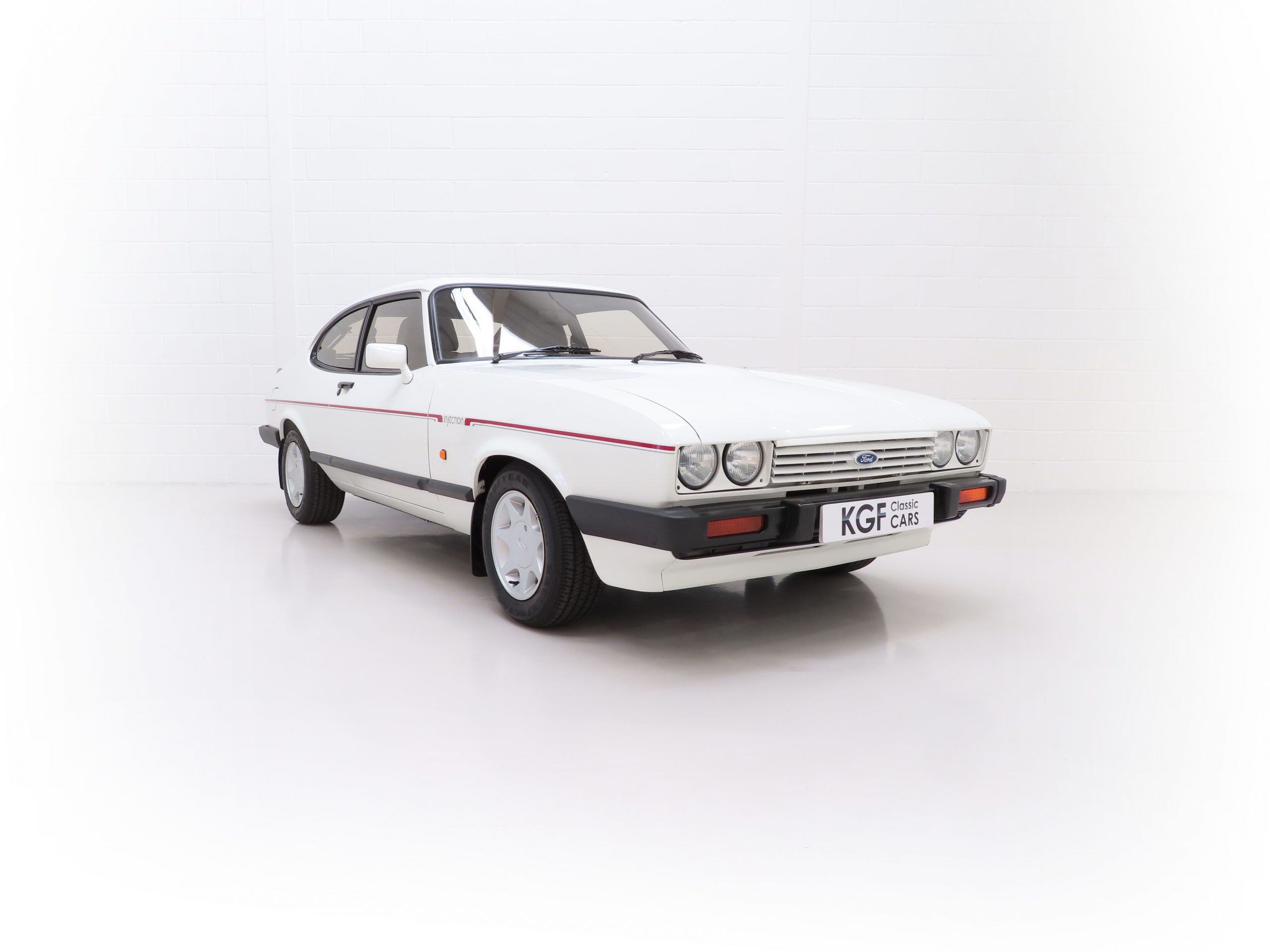 This spellbinding factory perfect Ford Capri 2.8 Injection is a champion in every respect having covered a warranted 585 miles from new with one custodian, Albert. Finished in striking Diamond White, (Code B3), it is difficult to fault this example without passing comment on Ford production control standards, such is the expert preservation of this miracle car. Stored in a dehumidified and centrally heated garage, every nut, bolt, clip and component throughout the entire car is exquisite with absolutely no aging. A benchmark car that will guide concours perfectionists on where every label, sticker, paint dab should be and how Ford engineers tightened the last bolt. All dealer branding remains fitted. Be prepared to experience the thrill of buying a dazzling new Capri!