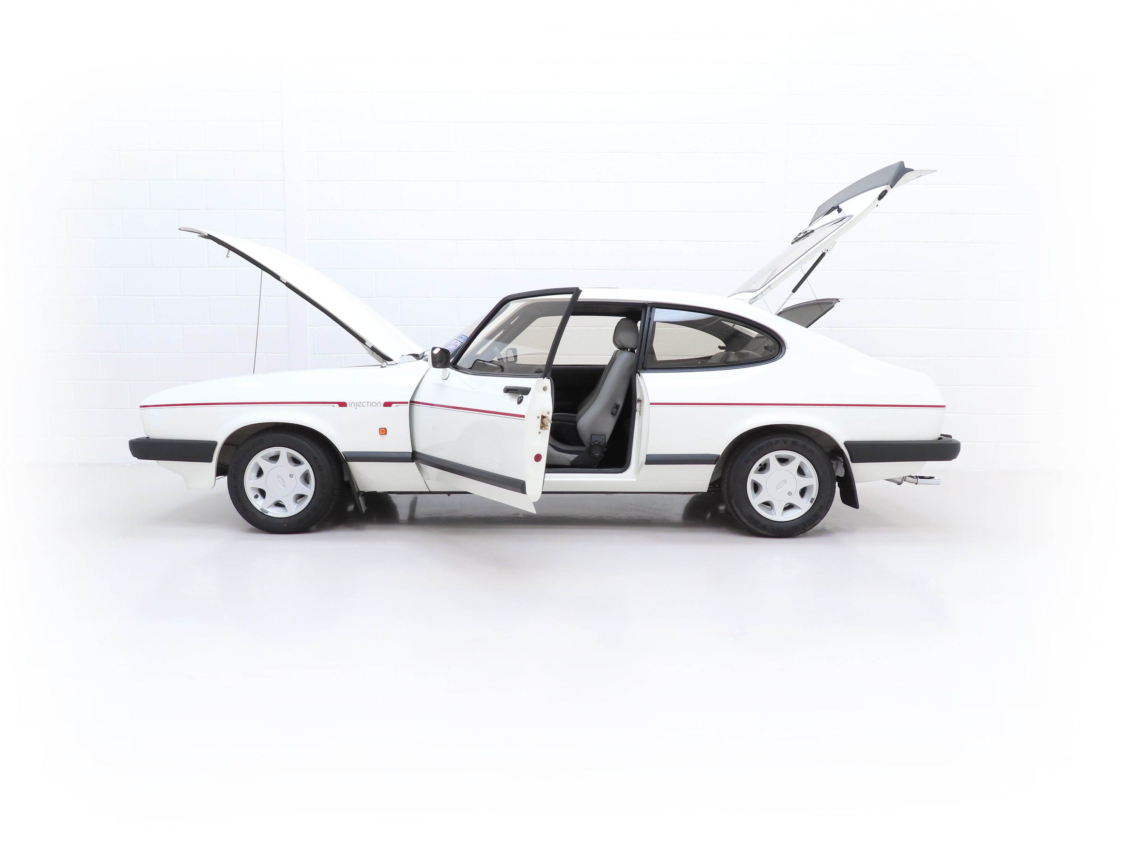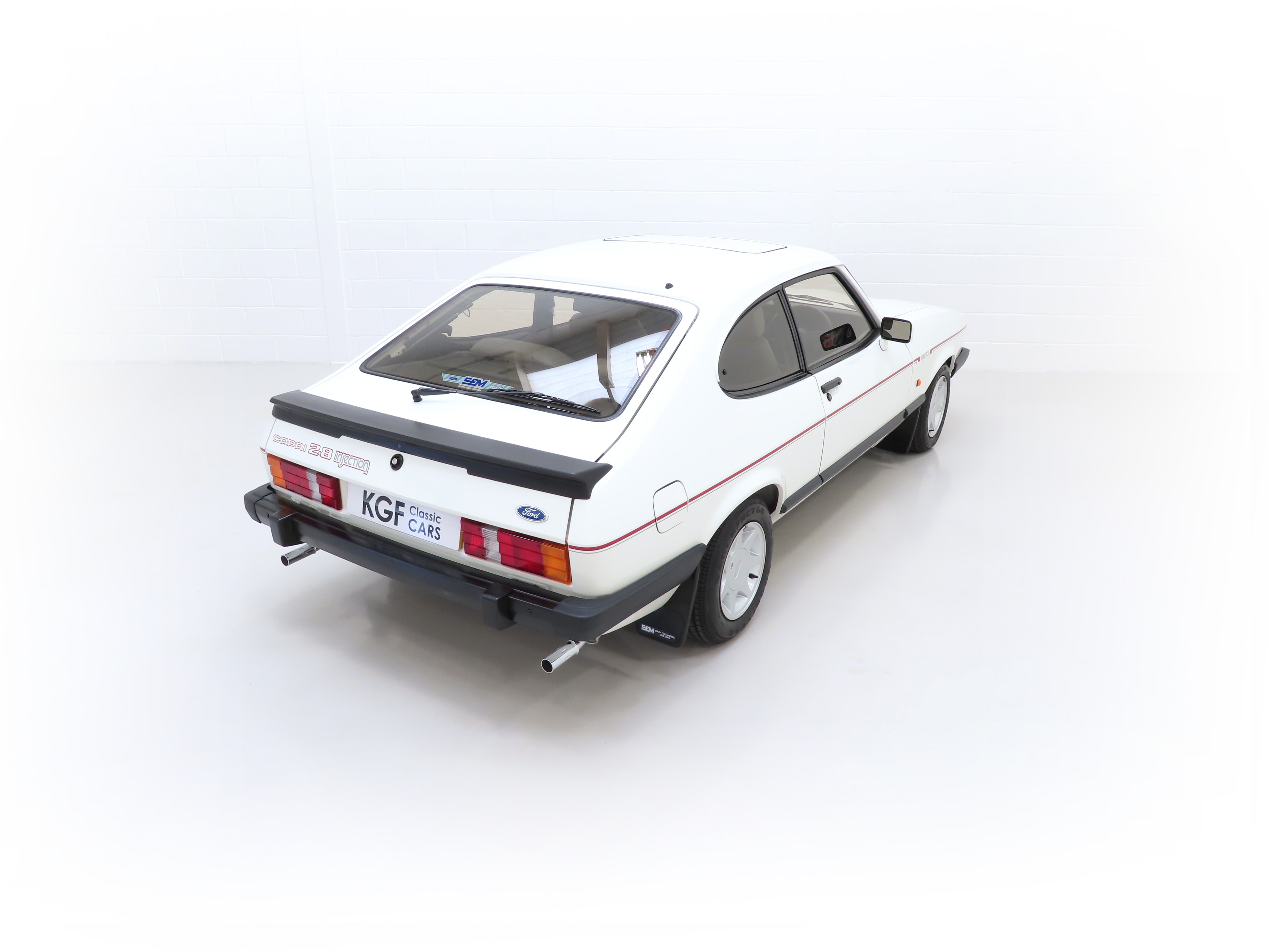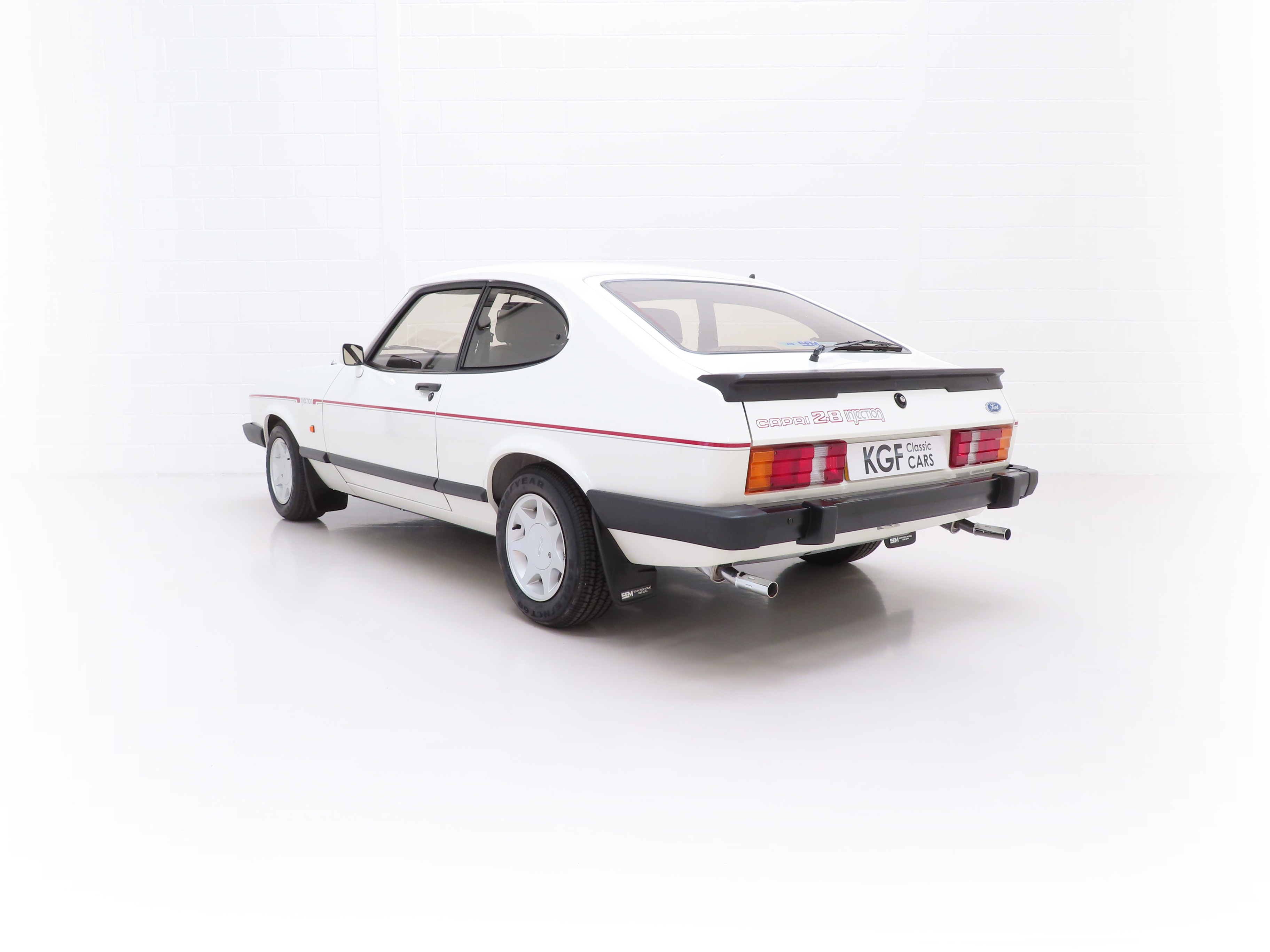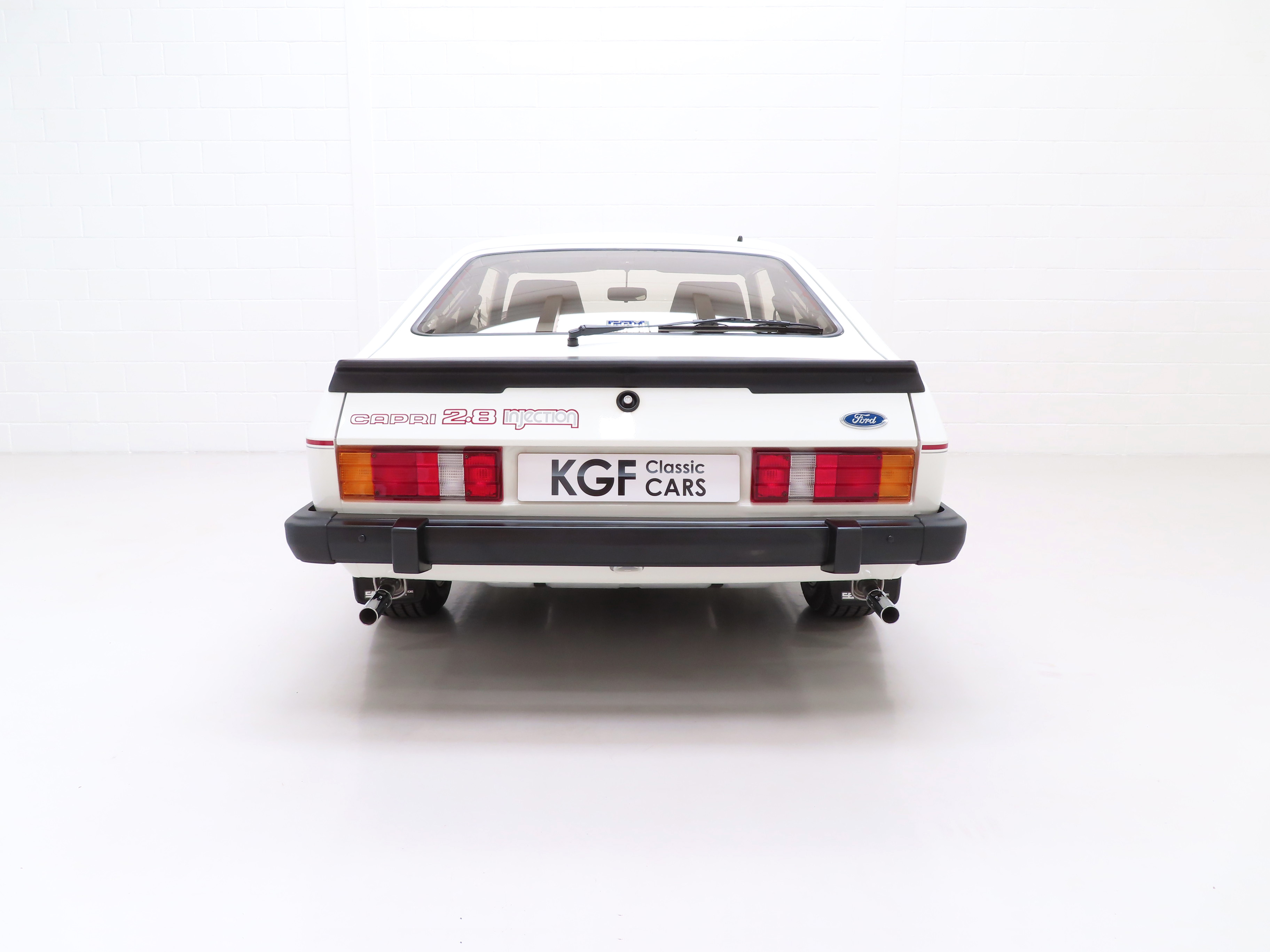 This spellbinding factory perfect Ford Capri 2.8 Injection is a champion in every respect having covered a warranted 585 miles from new with one custodian, Albert. Finished in striking Diamond White, (Code B3), it is difficult to fault this example without passing comment on Ford production control standards, such is the expert preservation of this miracle car. Stored in a dehumidified and centrally heated garage, every nut, bolt, clip and component throughout the entire car is exquisite with absolutely no aging. A benchmark car that will guide concours perfectionists on where every label, sticker, paint dab should be and how Ford engineers tightened the last bolt. All dealer branding remains fitted. Be prepared to experience the thrill of buying a dazzling new Capri!