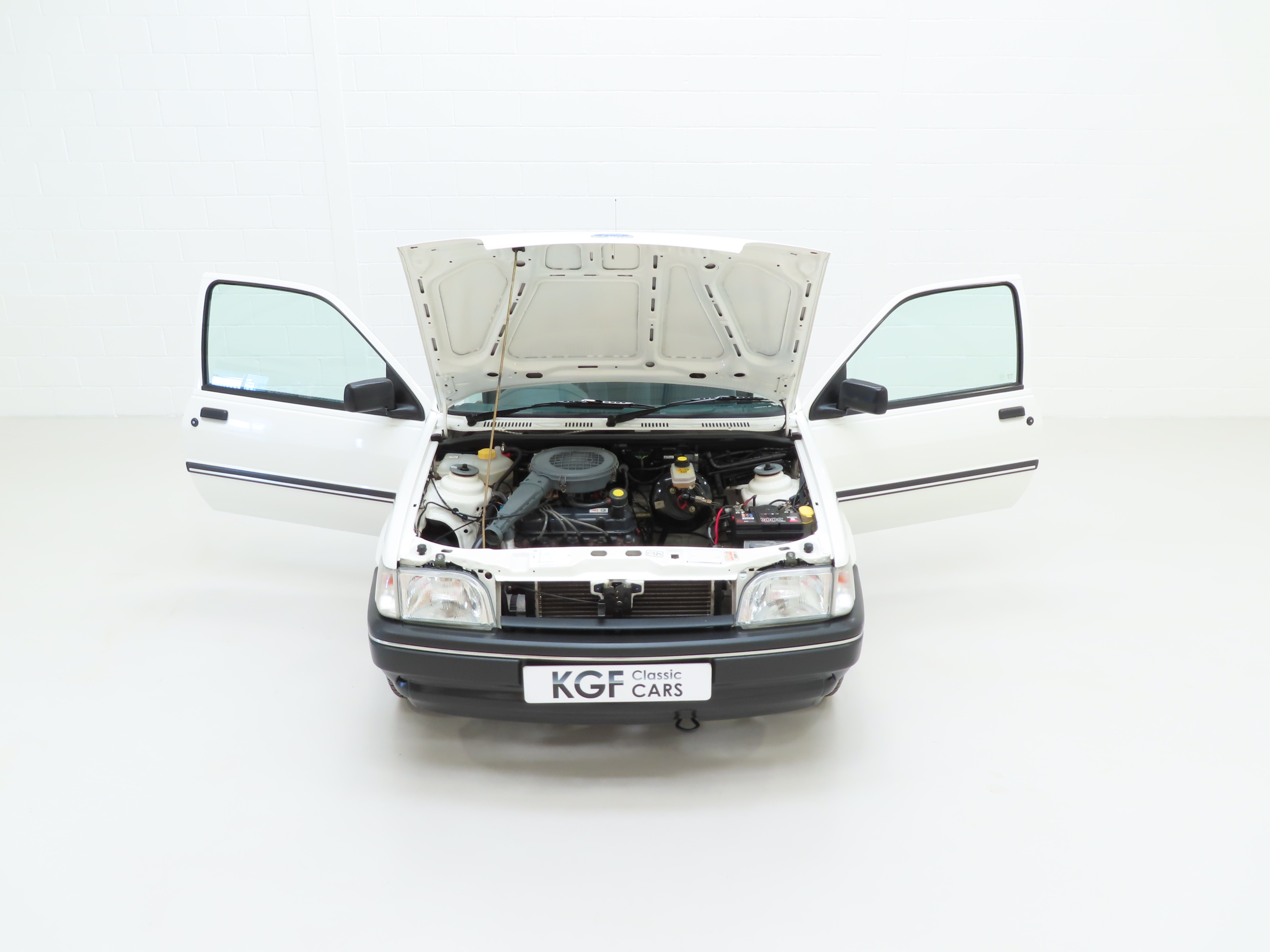 This wonderful example was registered new on the 1st August 1993 by Ford Main Dealers, Godfrey Davis of Welwyn Garden City. The new car sales invoice in the history file is made out to first owner, Mrs Leach, who paid £7,935.00 less part exchange allowance for her 1981 Ford Fiesta 950. Mrs Leach kept the car garaged and used it for the monthly shopping trip until eventually selling it in 2016. There have been just two further keepers since and the car has covered a verified 10,527 miles from new