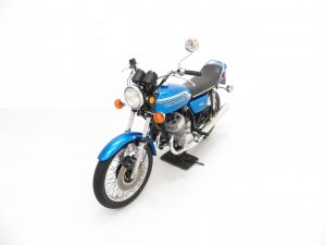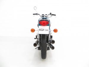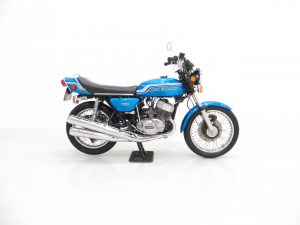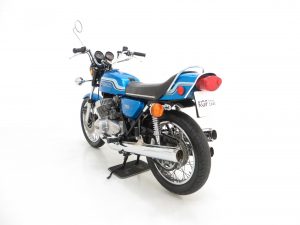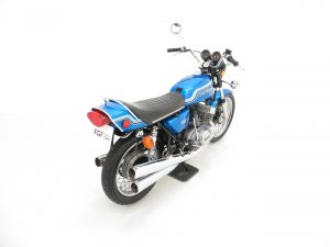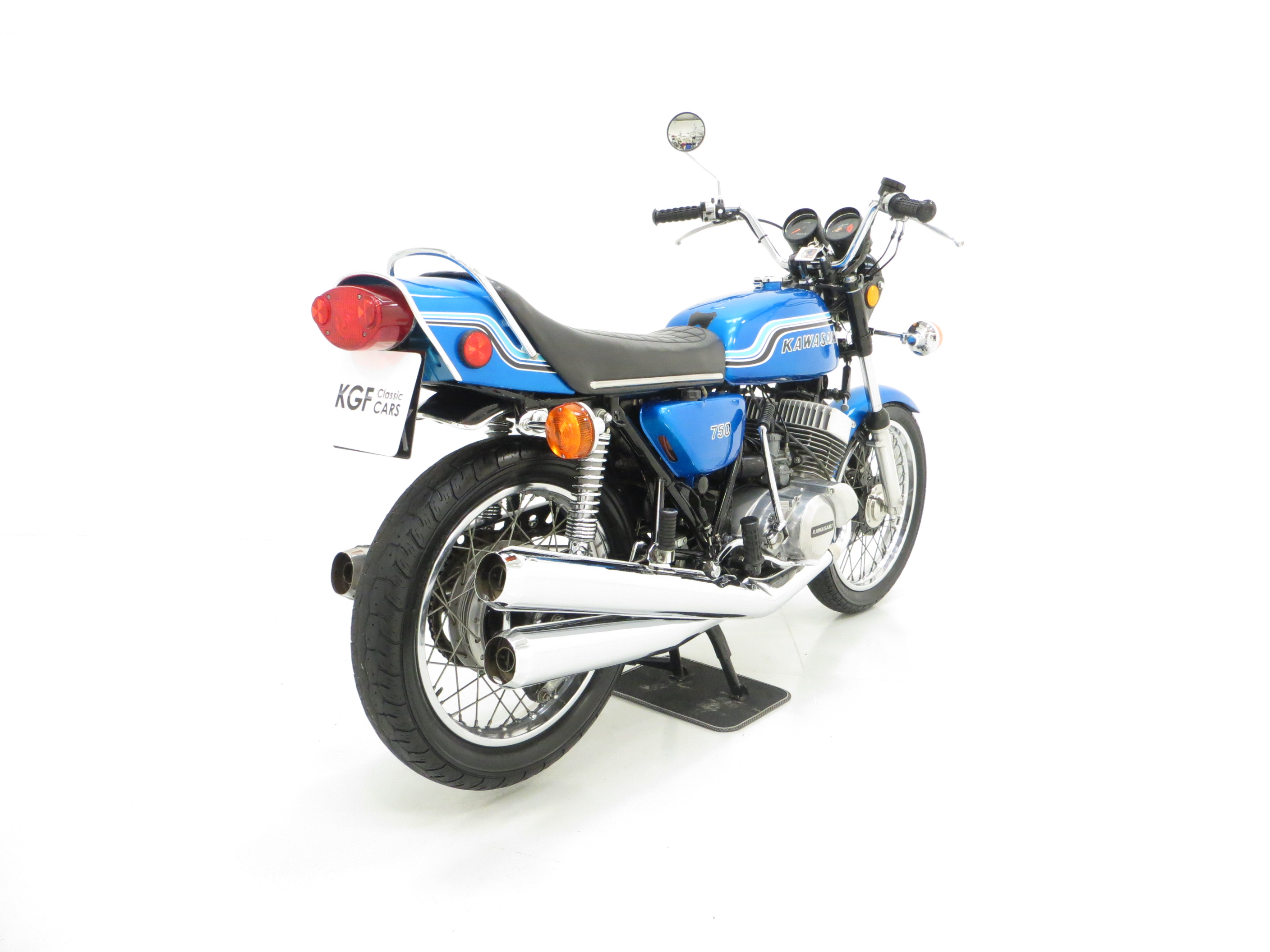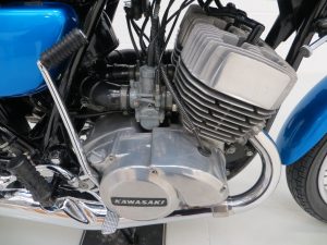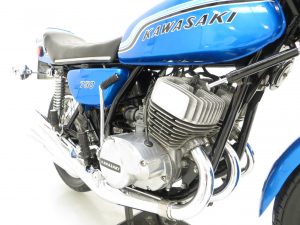 This final model 750 Mach IV H2 example was manufactured in 1975 and supplied to the US market. Imported to the UK in 1993, the bike has had just four UK keepers, the previous being Mr Ian Richards who has cherished it since 1999 having previously owned three ‘widow makers’ in his younger years. An avid and well known club member, regular outings and two club rallies’ per annum have ensured this bike has been enjoyed as intended. The award winning credentials include ‘Best in Show’ at the Kawasaki Northern (National) Rally 1999 presented by ‘Triples’ Guru Rick Brett, and the 2000 VJMC ‘Most Outstanding H2’ presented by legendary former Kawasaki Work’s racer Mick Grant.