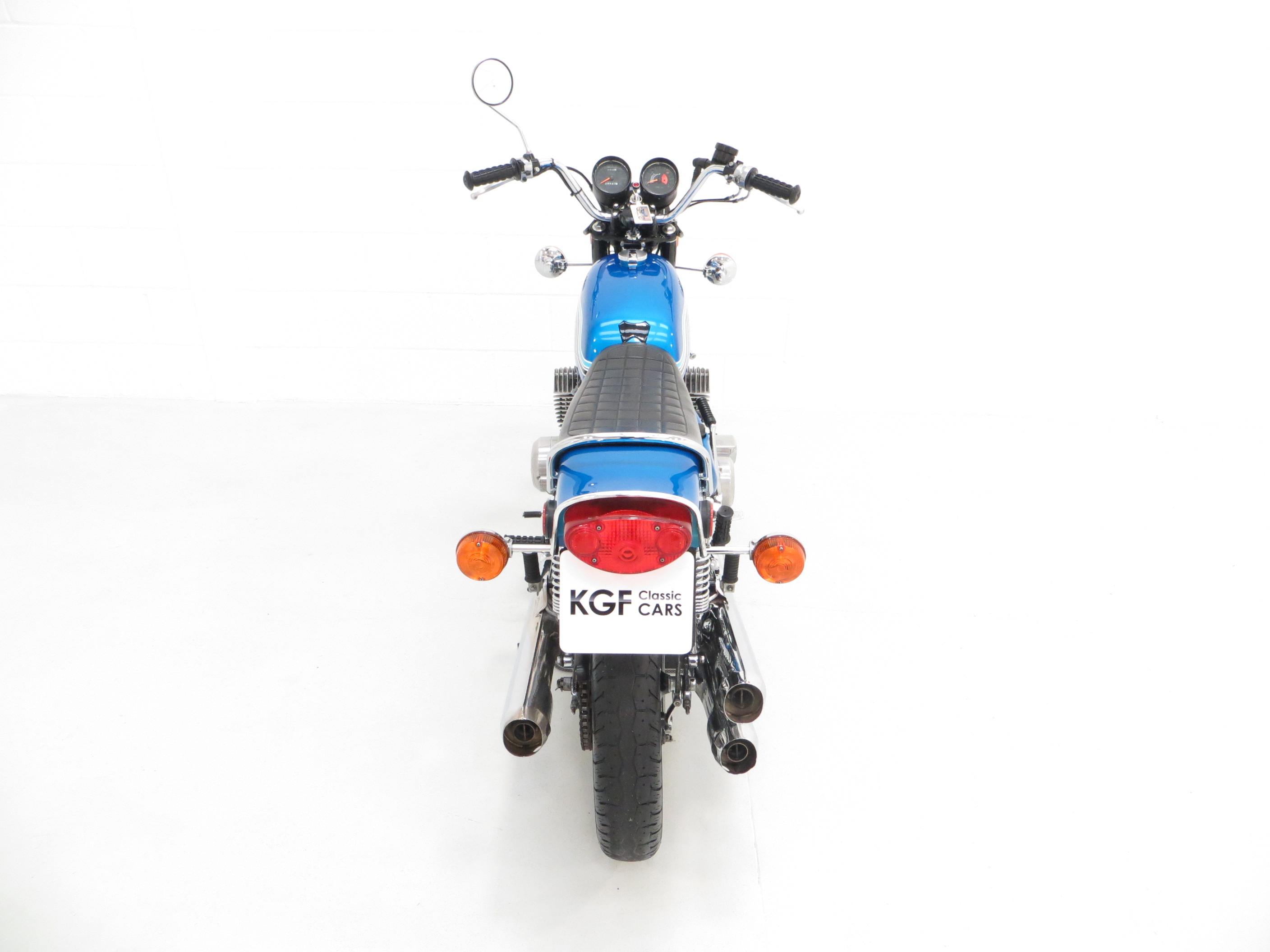 This exceptional example retains its beautiful original chrome wire wheels to uphold the classic look. In outstanding condition, the wheels are shod in premium quality Metzeler tyres of size 3.25-19 54H and 4.00-18 64H (front and rear) with masses of tread remaining. The braking system has the very expensive twin 295mm front disc option incorporating a 5/8 master cylinder and different banjo to feed the brake fluid to both discs. The 203mm rear drum has the working wear indicator.
