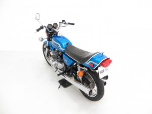 Ian Richards, the hugely knowledgeable and devoted long term owner of 18 years has preserved this incredible bike to the highest level, even down to the fitting of an almost indistinguishable Z750 kick start in order to retain the slightly thinner cast H2 original, which were prone to snapping under repeated use. He has even the foresight and awareness to remove the bottom exhaust bolt, largely the cause of increased tension and resulting in the original pipes cracking. Completing the history file is the original Owner’s Manual and Owner’s Warranty Handbook as well as two production Kawasaki H1 and H2 sales brochures. This 750 Mach IV H2 is an absolute must for the avid collector where inspection and trial will not disappoint. A rare unmissable opportunity indeed!