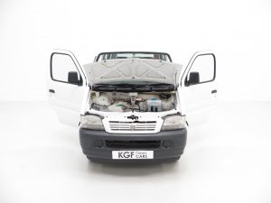 The interior of this super example is clean and very well preserved. The eight-seat configuration consists of twin facing rear benches to seat six and two front seats, all with three-point seatbelts factory fitted. The grey cloth trimmed seats, (Code GR), are clean with no wear, damage or sagging. The simplistic yet chirpy cabin space will allow for much comedy with a full load of family or friends who will have little option other than to ‘budge up’ snugly! The fragile interior trim and plastics are immaculate, commensurate with the low mileage, and all controls and function operate perfectly. The original vinyl cab floor covering can be lifted easily to inspect the cab floor which is incredibly well preserved, as are the usually rust prone front steps and inner arches. A perfect city people mover!