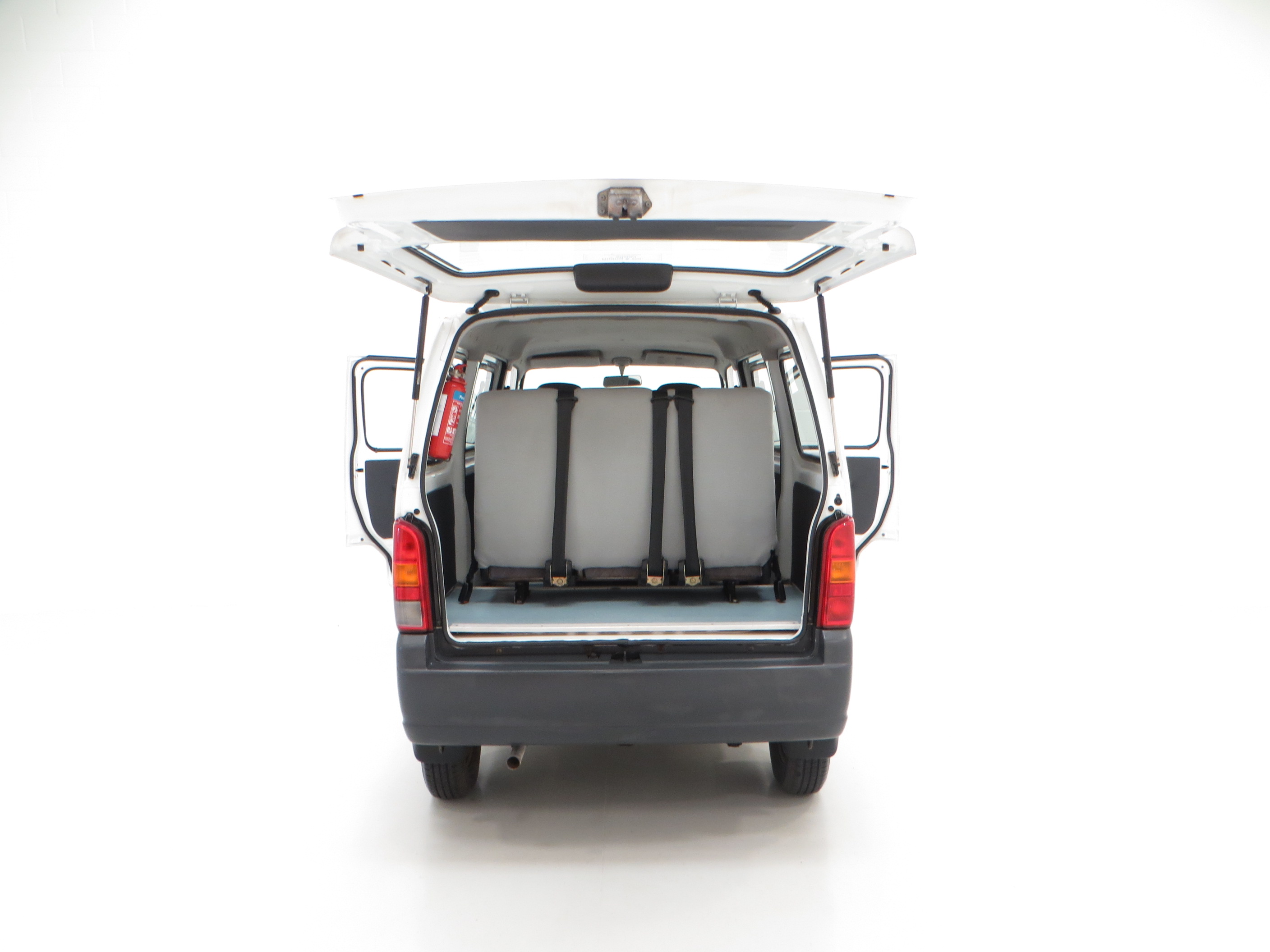 Twin-side loading doors, driver’s airbag, front door impact bars, collapsible steering column, front crumple zone, electric power steering, central locking to all doors, tinted glass, locking fuel cap, halogen headlamps, headlamp adjust, high level brake light, heated rear window, rear wash/wipe, mud flaps, glovebox, cab vinyl floor covering, coin case, ticket holder, three forward facings rear seats, three rear facing rear seats, three-point seat belts to all eight seats.