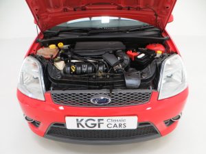 Fast becoming a highly sought after modern classic hot hatchback, the Fiesta ST150 presented here has covered a remarkably low 36,813 miles from new with just one owner. The beautiful Colorado Red paintwork, (Code K2), accentuates the sporting lines and racy ‘Aero’ body-styling kit perfectly, just like the original styling of the Mk1 Supersport and XR2 once did. The chunky sports trim sections, badges and optional GT side stripes are as new. There is some light delamination to the edges of the tinted rear glass and the driver’s door edge has been carefully touched in to a few places. Originality seekers will be pleased to see supplying dealer number plates as well as factory stickers and labels in the door shuts. The underside and wheel apertures are super clean and original. A very rare find in such a low mileage, low owner and unmolested state.