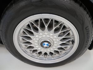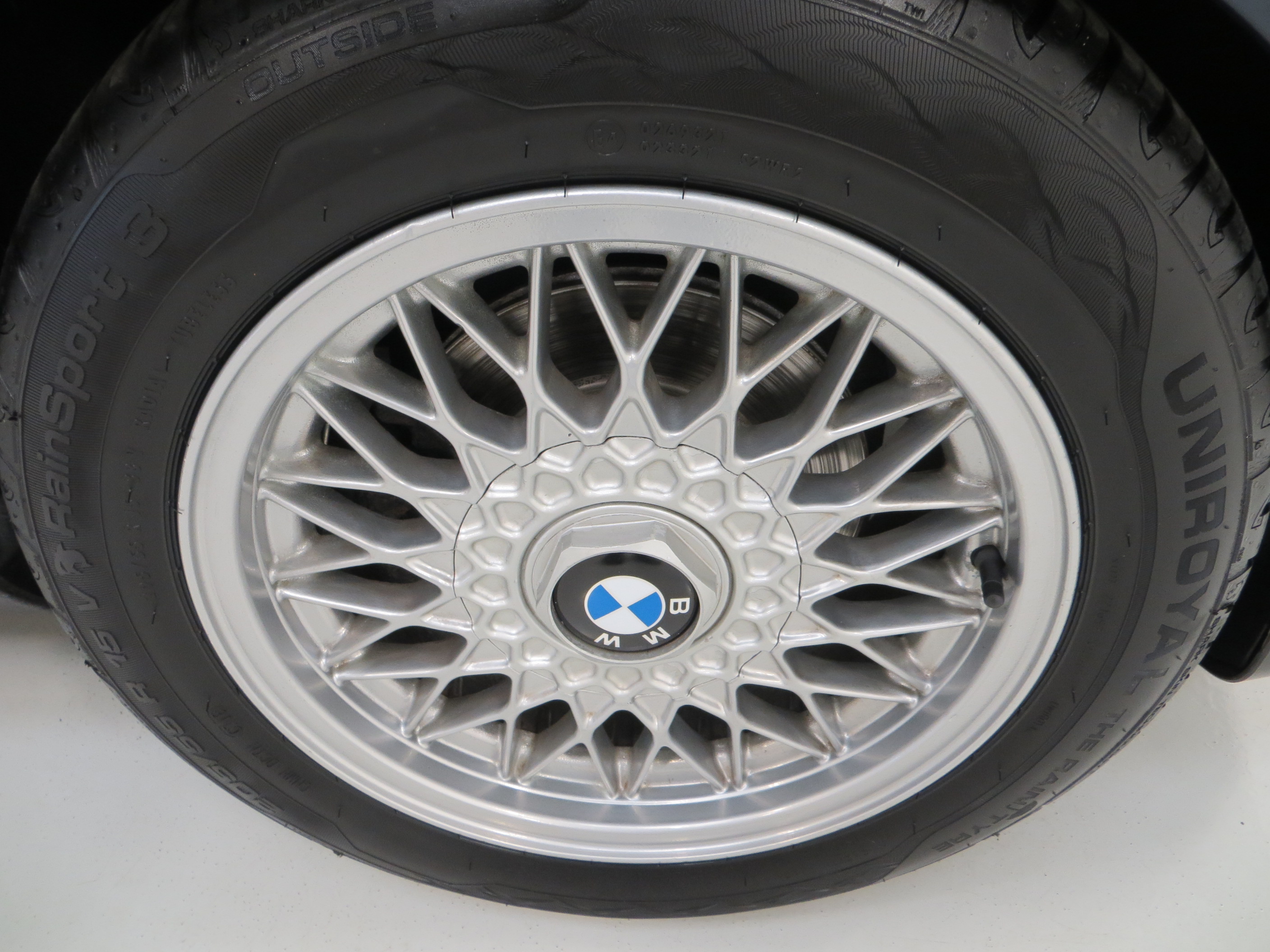Five 15″ light alloy wheels in cross spoke styling are original 325i fitment in pristine order with correct BMW hex centre caps. Matching premium brand Uniroyal Rainsport3 205/55 R15 tyres have recently been fitted including the spare which sits in the spotless boot area alongside the first aid kit, warning triangle, jack and 100% complete toolkit. The anti-lock braking system (ABS) incorporating all round discs offers ample stopping power to this range topping model.
