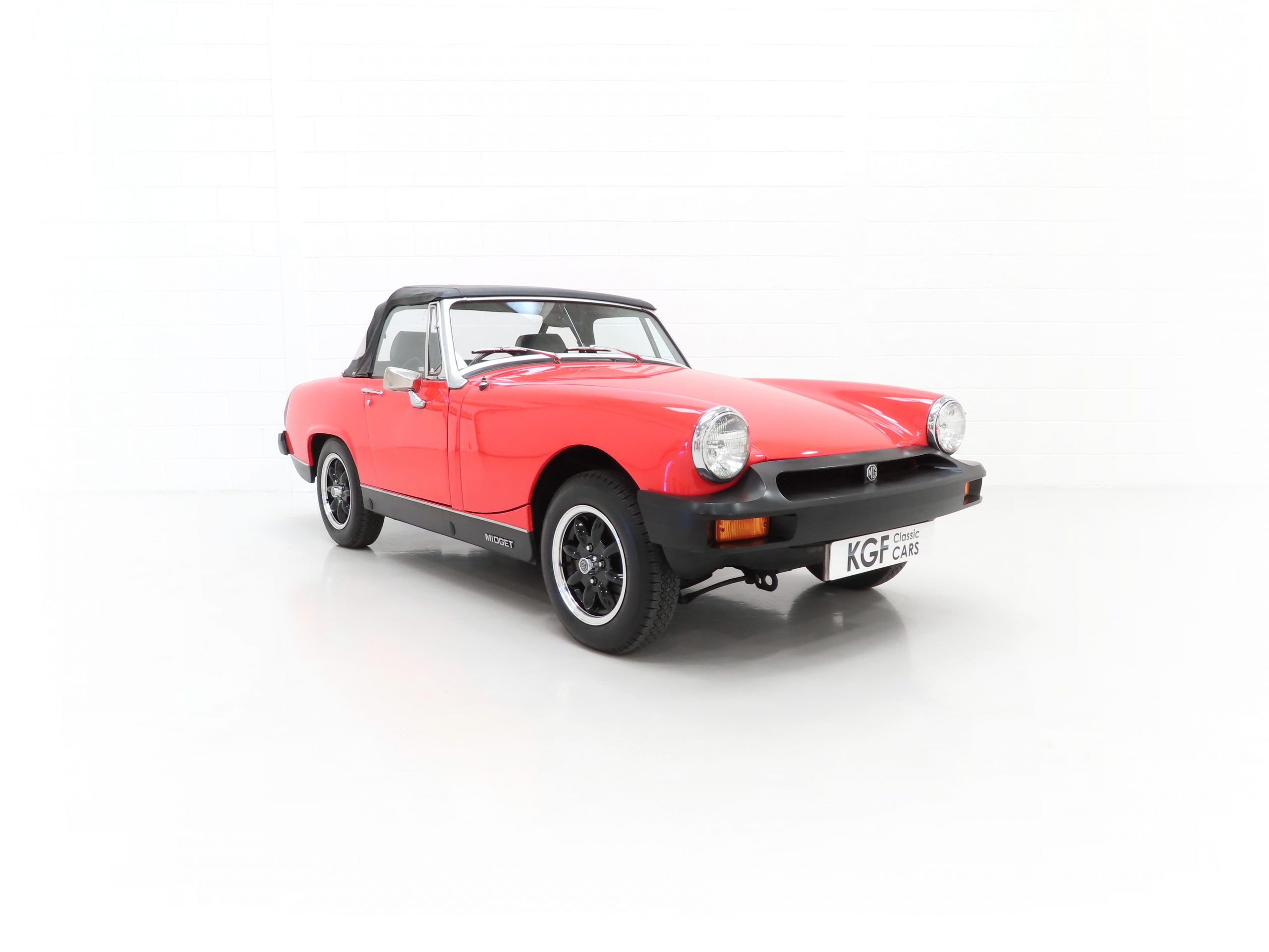 Production of the MG Midget ceased in 1979 so this 1980 registered example on a V suffix is a very late car. Registered new on the 1st January 1980, this delightful Midget was supplied by MG Franchisee, Wadham Stringer of Taunton. The car has had just five former keepers with the previous custodian acquiring the car in 2016 after extensive searches. It sat alongside a small and varied stable of interesting vehicles including a late 1950’s MV Agusta and a Jaguar F-Type. The history file accompanying the car is complete with receipts and invoices for servicing and maintenance as well as a driver’s handbook, two sets of keys and an MG range brochure. A full inspection, ignition service and brake overhaul have been completed in September 2022 so this delightful Midget Is ready to enjoy and show.