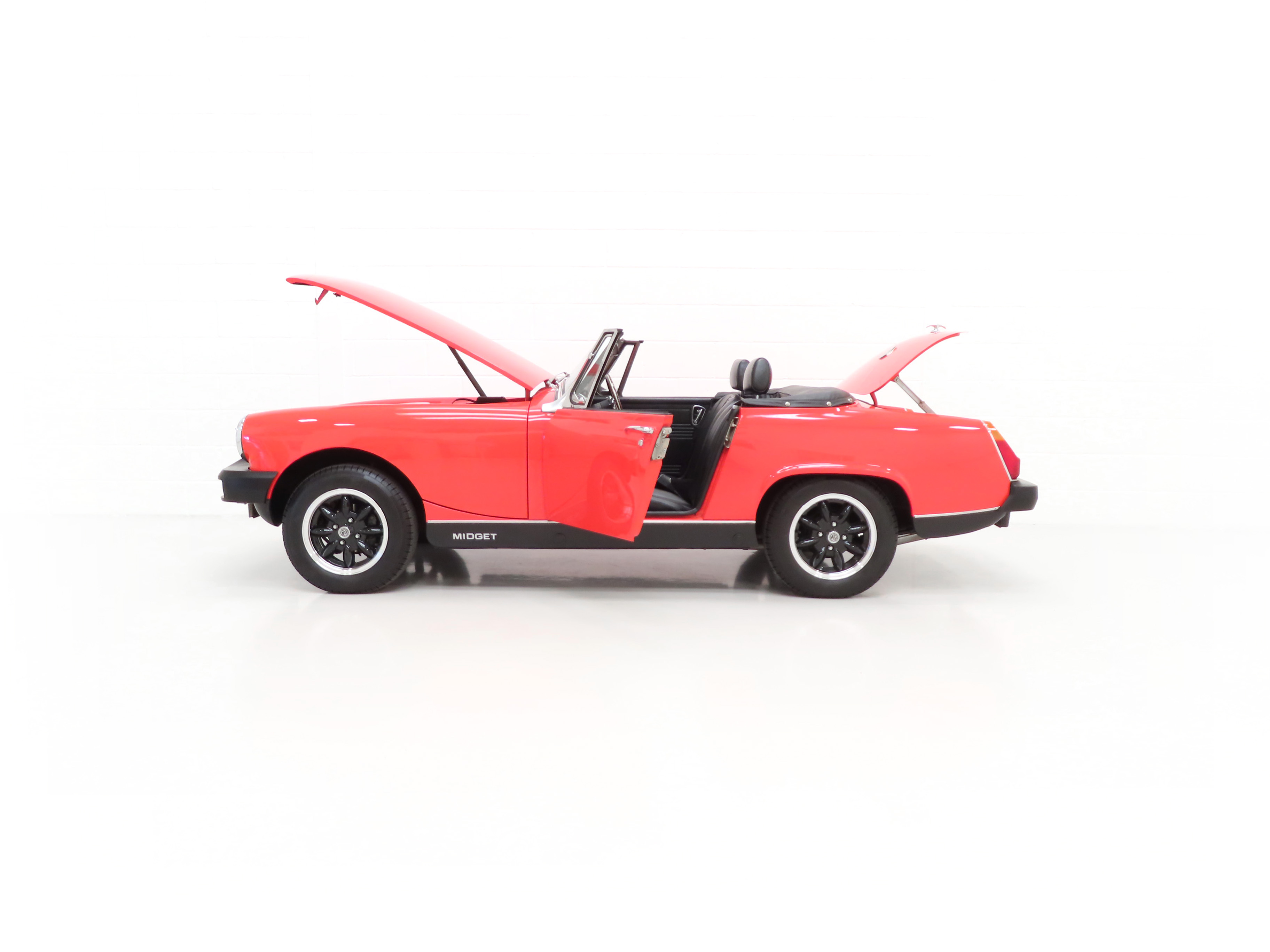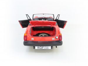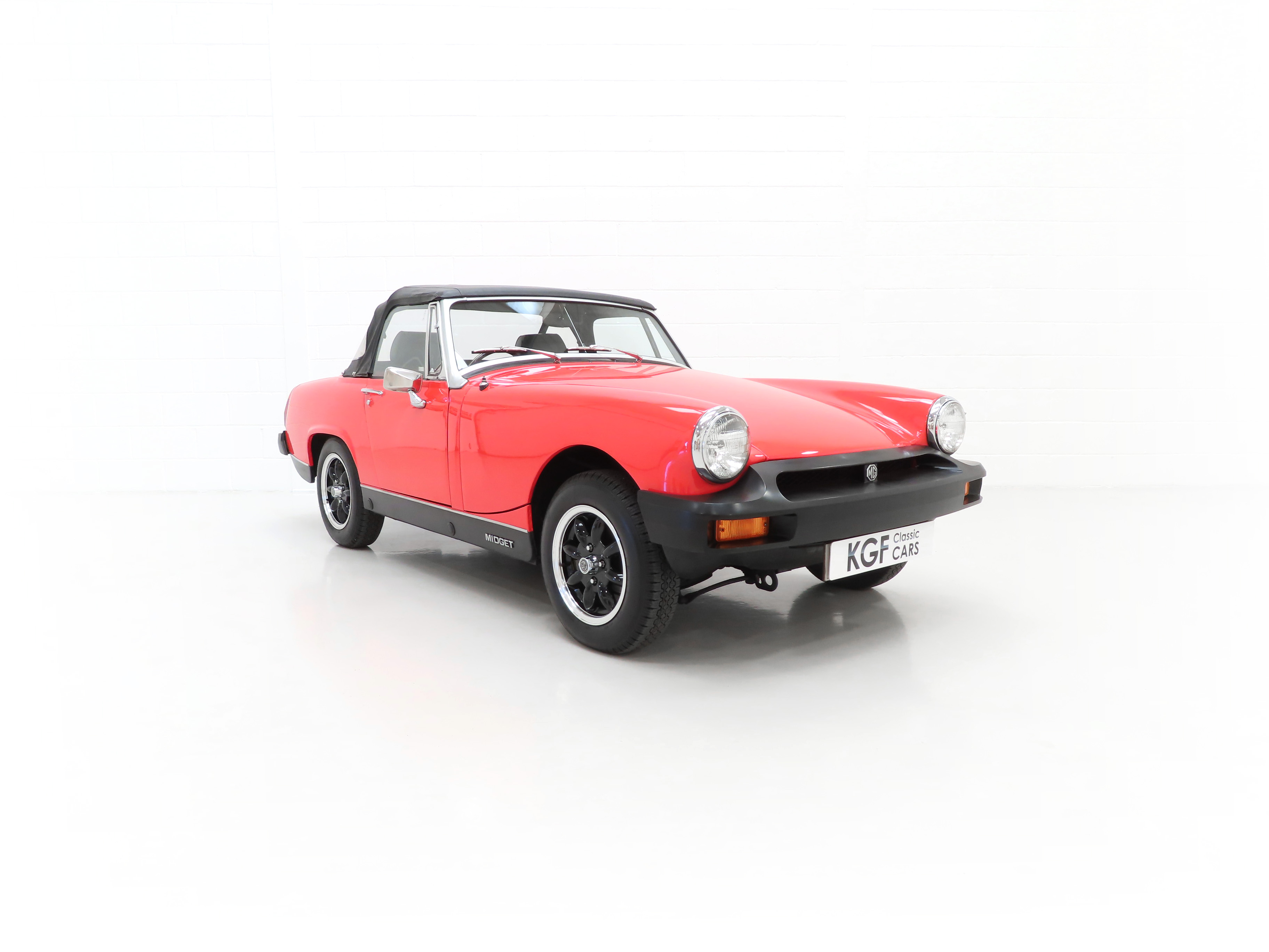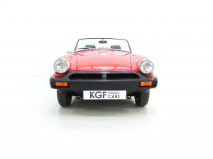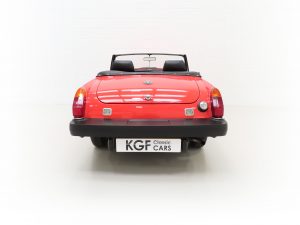 This lovely very late 1980 registered MG Midget is finished in the original colour of Vermillion, (Code CML), which boasts a wonderful bright shine and uniform finish. The car is in fantastic condition structurally and all body panels are straight and undamaged, and the wheel arches still display clearly defined spot weld dimples. Remedial cosmetic refreshment has taken place in order to uphold such a bright show appearance and some minor blemishes will be detected upon close scrutiny. The once criticized polyurethane bumpers are now desirable for those seeking a car close to standard and are in excellent condition with none of the common severe distortion. All Sekurit glass and lights are original and in excellent order and the badges are perfect. The vinyl hood is factory fitment and remains in fantastic order with all ‘pull-the-dot’ and Tenax poppers intact and complete with both the full and rear tonneaus covers. A smashing example ready to stand very proud among most other examples.