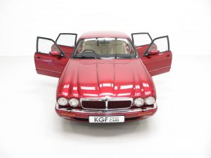 This beautifully opulent Jaguar XJ Sport is finished in original Jaguar Regency Red Metallic, (Code CFS), which has a deep lustrous shine and uniform finish. All the factory panels are straight with only light aged related markings visible and the twin coachline in unbroken. All the trim, chrome and rubbers are in excellent condition. The jewel effect lenses are perfect having been protected by Jaguar headlamp covers from new and the factory fitted glass retains all stickers and security etchings. Still sporting the supplying HR Owen Jaguar dealer number plates and rear window sticker, this example is truly unspoilt. Graceful, sleek and with a low-slung stance, this car simply exudes elegance.