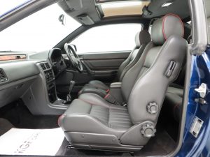 T-bar glass roof with removable panels and holdall, tinted glass, side intrusion door beams, boot mounted spoiler, front foglamps, driver’s airbag, rake-adjustable sports steering wheel, lumber support, electric front windows with ‘one-shot down’ driver’s window, electric heated door mirrors, boot and fuel filler remote release, infa-red remote central locking, perimetric and volumetric alarm, digital clock, tachometer, lamps-on buzzer, 50/50 split folding rear seat, cassette storage. Factory Options; Pearlescent paint, air conditioning, leather trim, driver’s seat height adjustment.