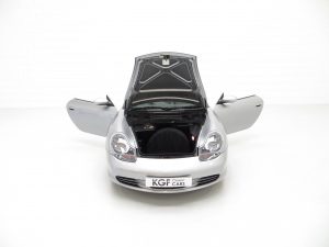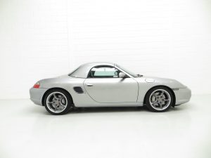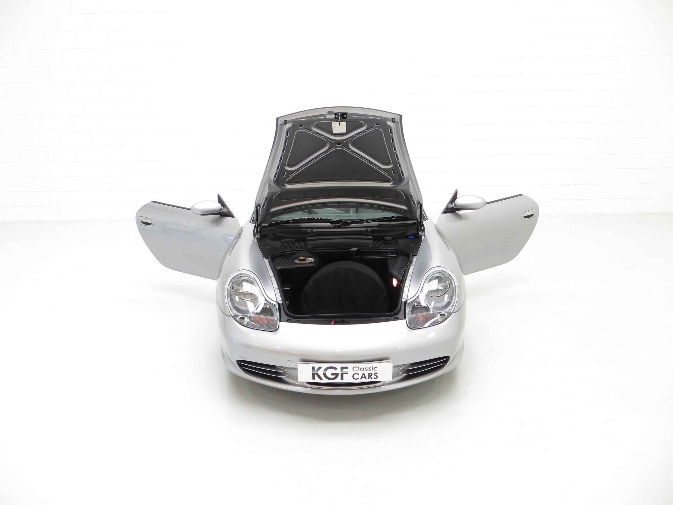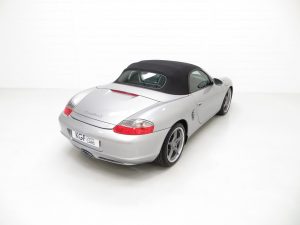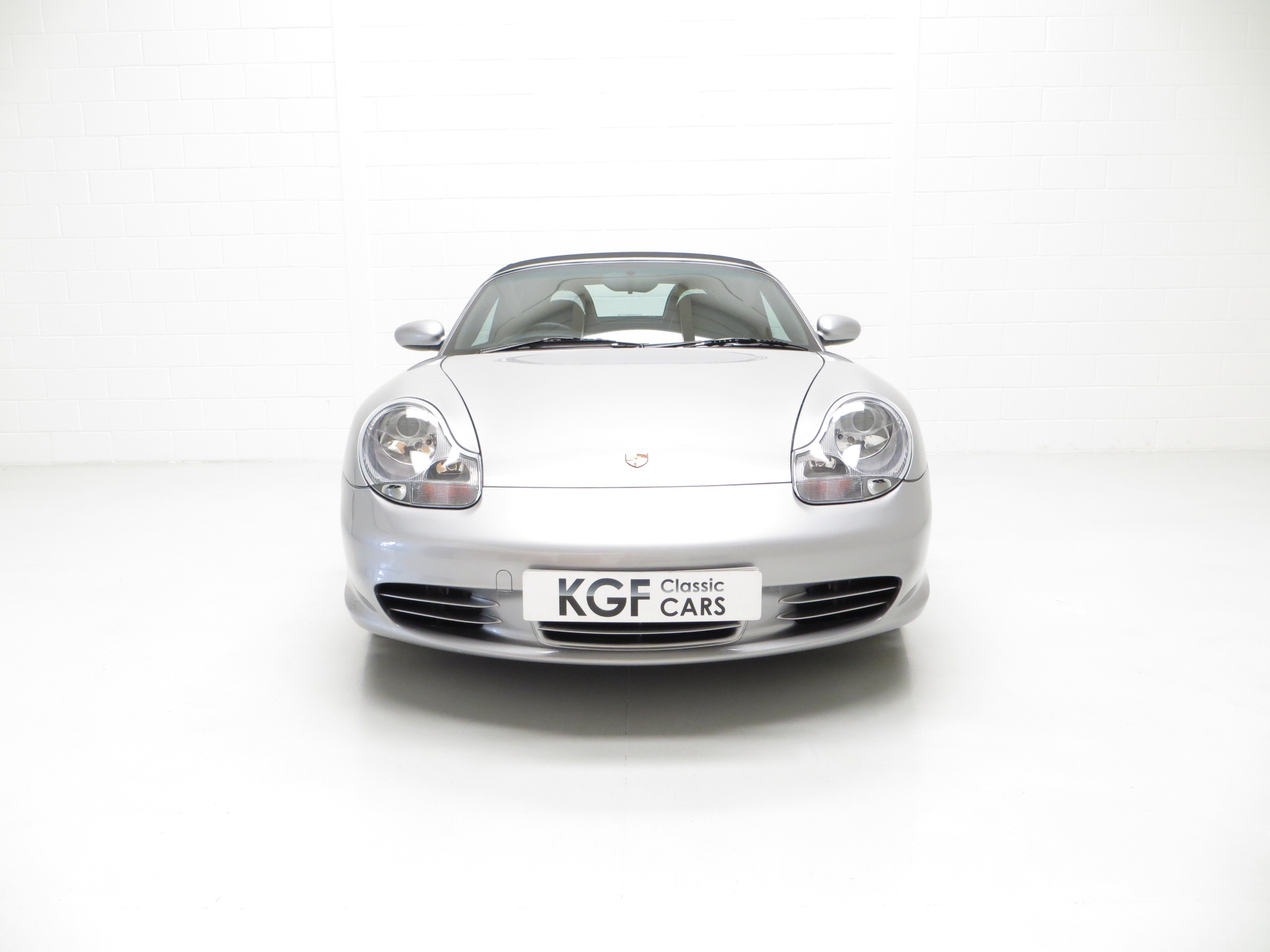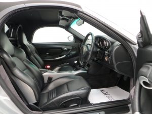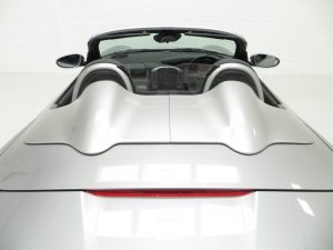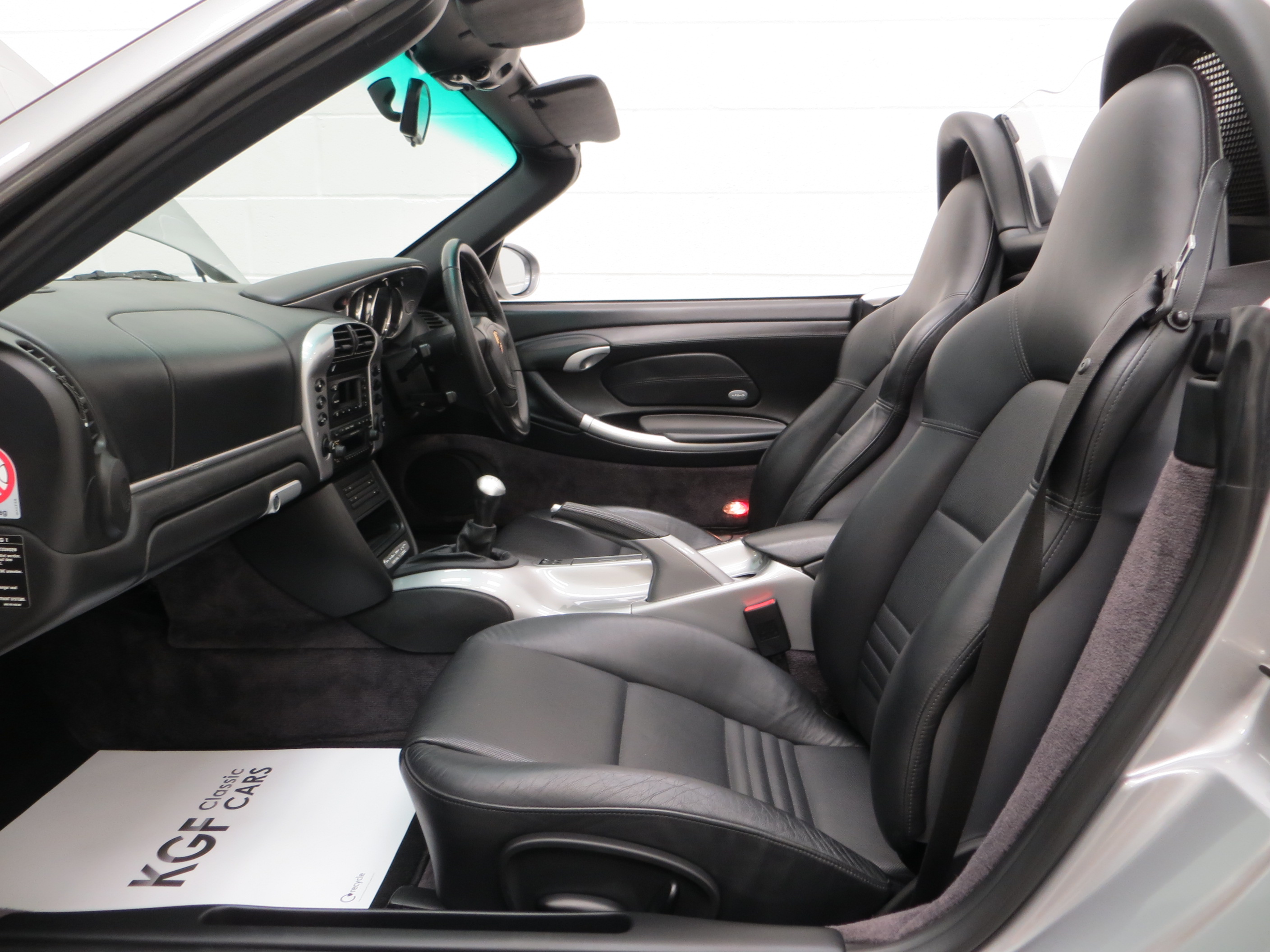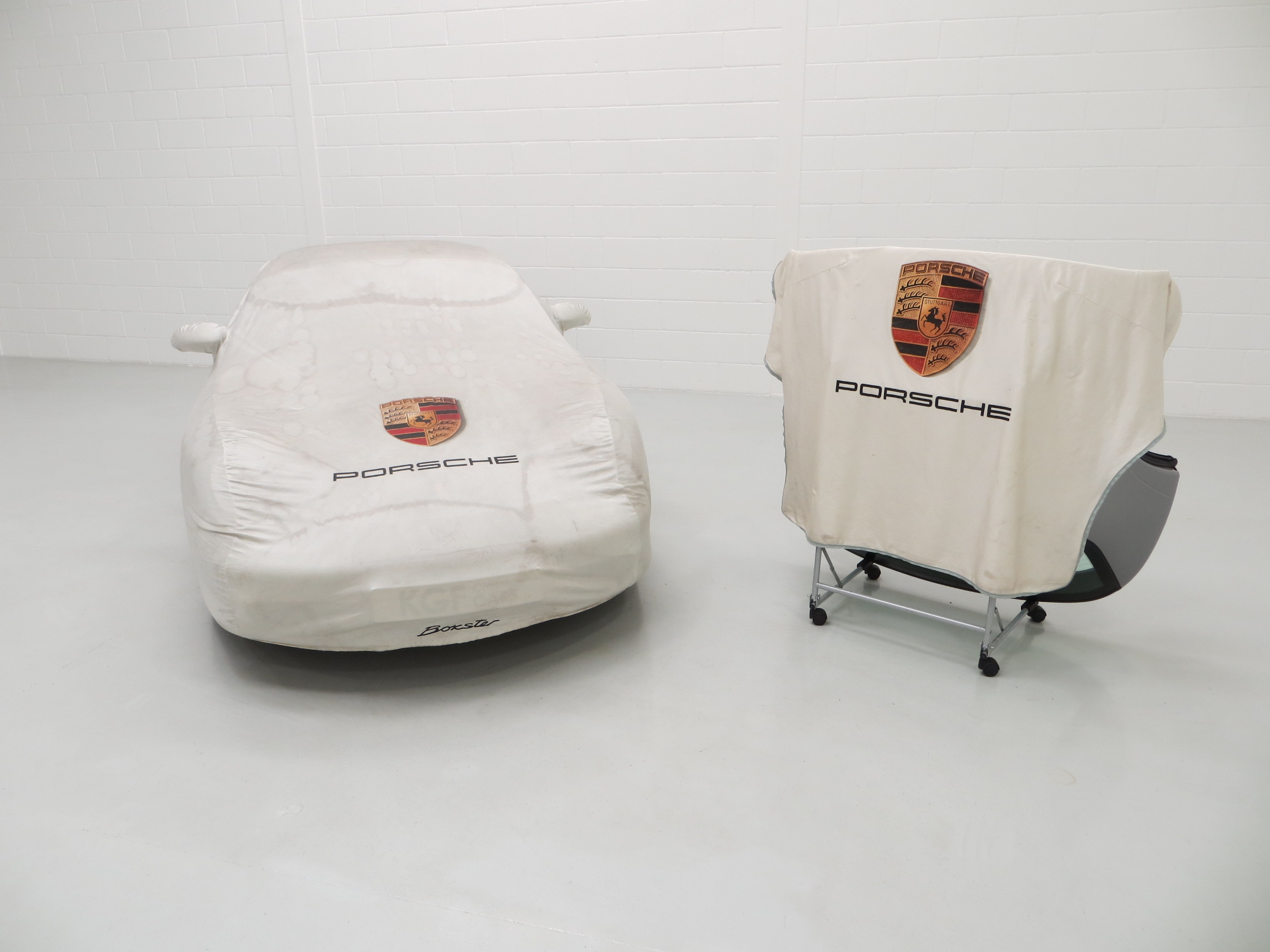 This exceptional example is finished in the only available colour, GT Silver Metallic paintwork, (Code LM7Z). It harks back to the original ancestral lines of the curvaceous 550 Spyder, particularly with the optional Speedster Humps, with the styling cues and the unmistakable Porsche bloodline clear to see. A virtually flawless factory finish is guaranteed to marvel even the most demanding scrutineer and the car is totally standard without exception. The UV-resistant hood in Black (an option from the standard Cocoa Brown) is perfect in both operation and condition and the expensive optional hard top comes complete with stand and storage bag. A very special example of the car built to celebrate a Porsche Icon.
