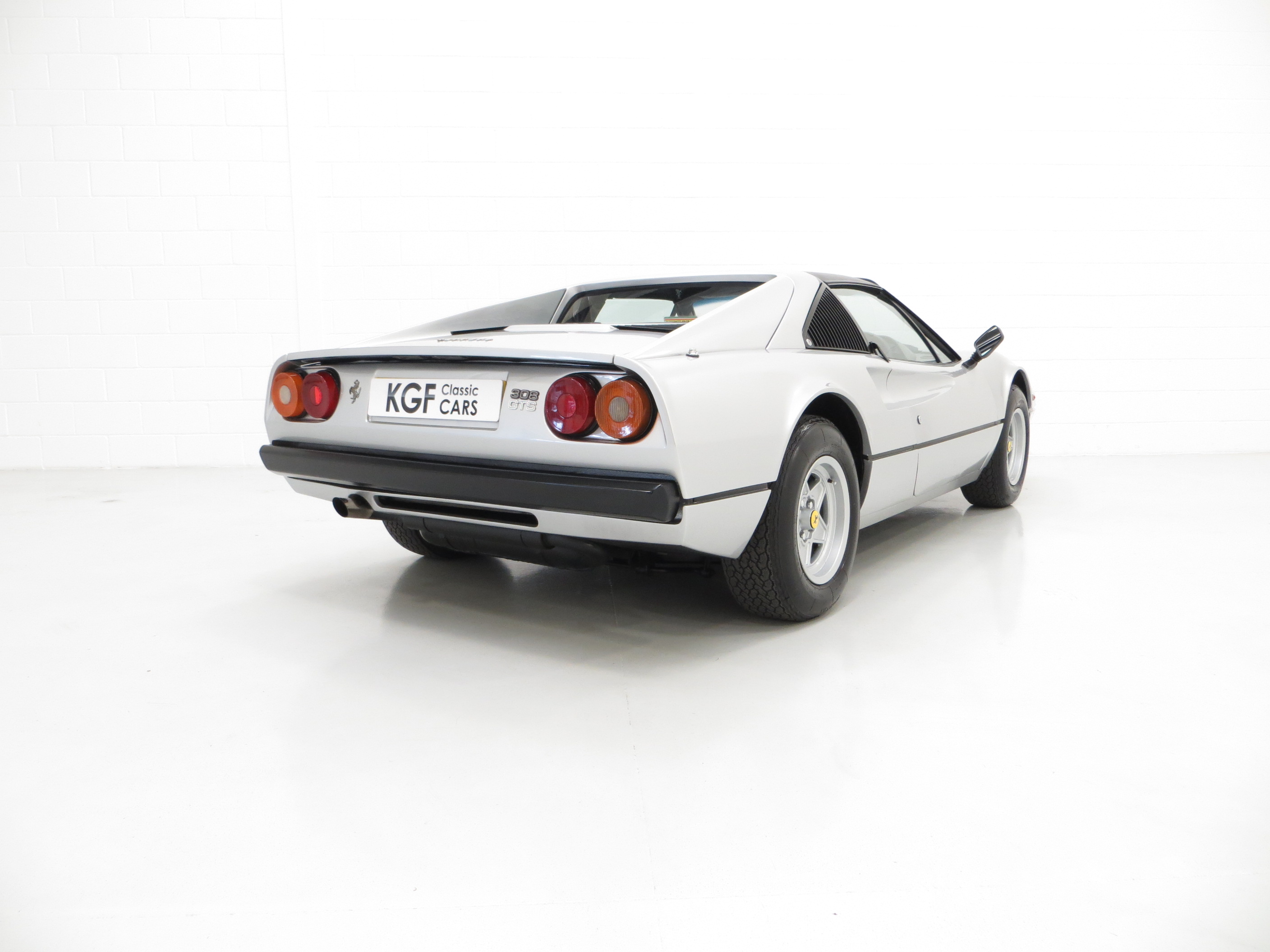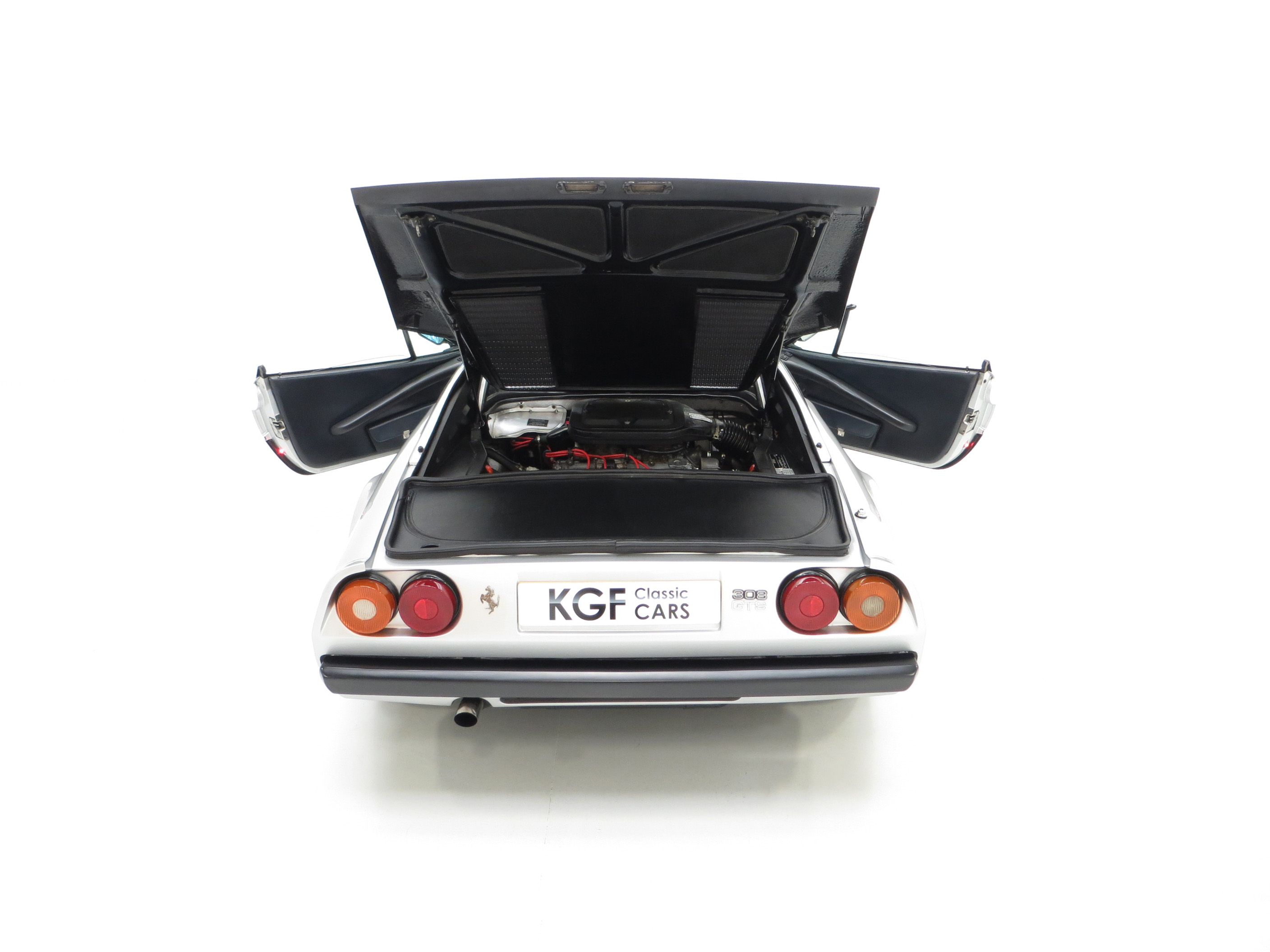 Tubular frame chassis, two seater Spider body, removable roof panel with storage cover, retractable headlight pods, front and rear opening panels, deep scalloped air intakes, zipped luggage compartment, limited slip differential, ‘cavallino rampante’, 308 GTS and ‘Disegno Di Pininfarina’ badging, iodine fog lights, power windows, twin Fiamm horns, door oddment bags, full Veglia Borletti instruments, tell-tale warning lamps, Momo steering wheel. Factory Options: Wider wheels, air conditioning, radio.