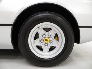 Ferrari 7½ x 14” Cromodora light alloy wheels are wider than standard as specified from the factory as an optional extra. Premium and matching Michelin XWX 205/70 VR14 tyres show ample tread and are fitted to all wheels including the spare. The effective braking system comprises of four-wheel ventilated disc brakes with a Bonaldi vacuum servo on a dual circuit. Still impressive to this day and bringing the Ferrari to a rapid halt.