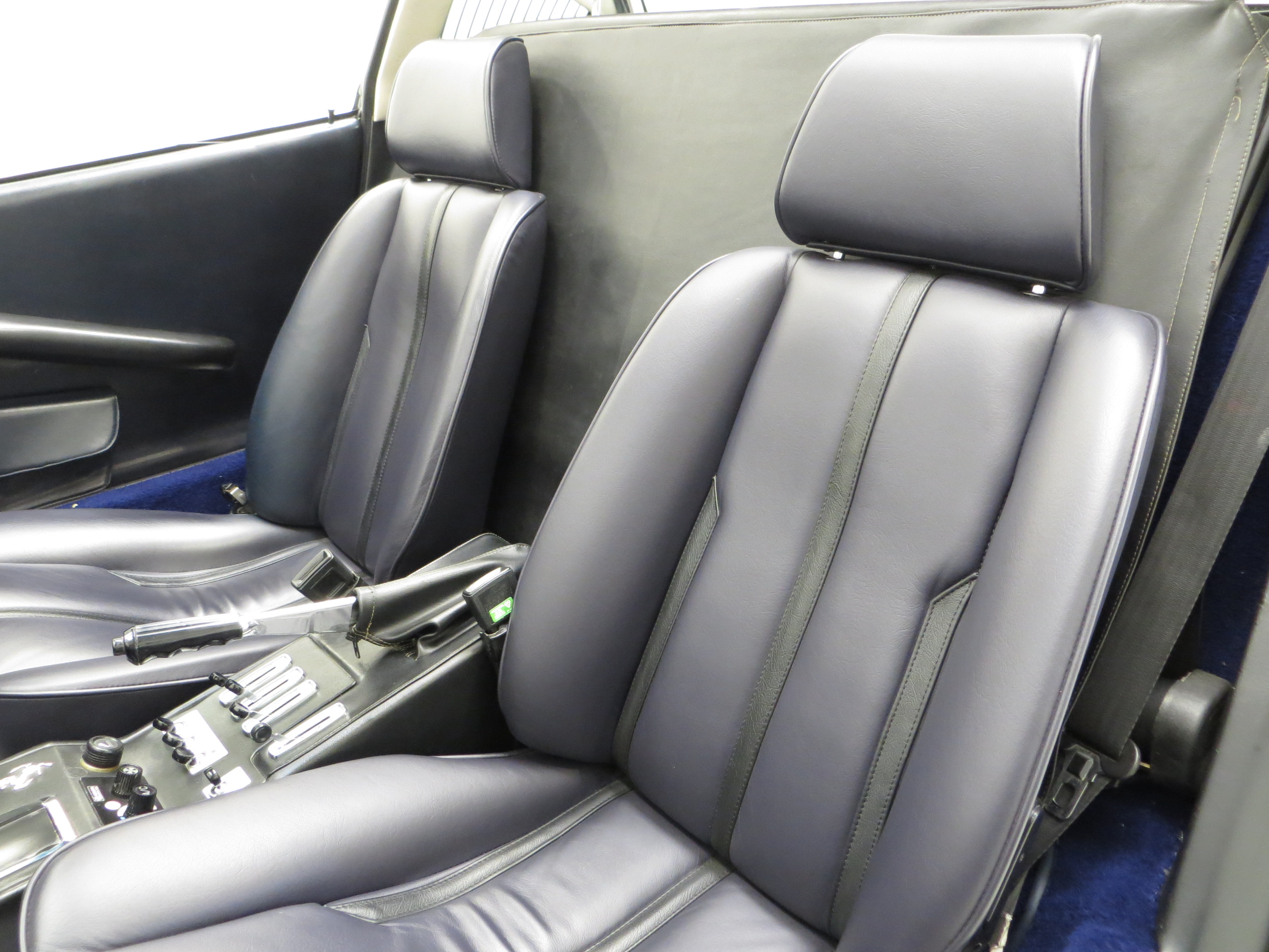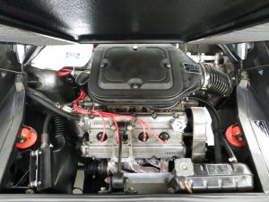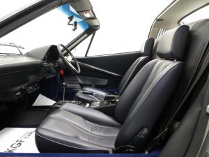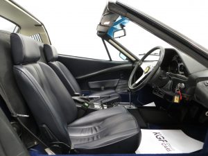 Blue full leather seat facings, (Code VM3282), in this 308GTS are in immaculate condition along with the co-ordinating deep blue carpeting carpeting. Seven Veglia Borletti instruments work perfectly along with all the attractive chrome button sliders and ornate switch gear. The three prancing horse vent pods on the dash and exposed chrome ‘H’ gate gear shift are simply automotive art, and the Momo leather-rimmed steering wheel with the circular horn push proudly displaying the ‘cavallino rampante’ reminds the driver how special this car is. Originality and authenticity seekers will rest easy with the factory build plate with chassis number still affixed to the steering column. The deep luggage area is hidden by a zipped cover, which unusually is fully intact. Door storage compartments closer representing designer handbags complete this exquisite classic Ferrari interior.