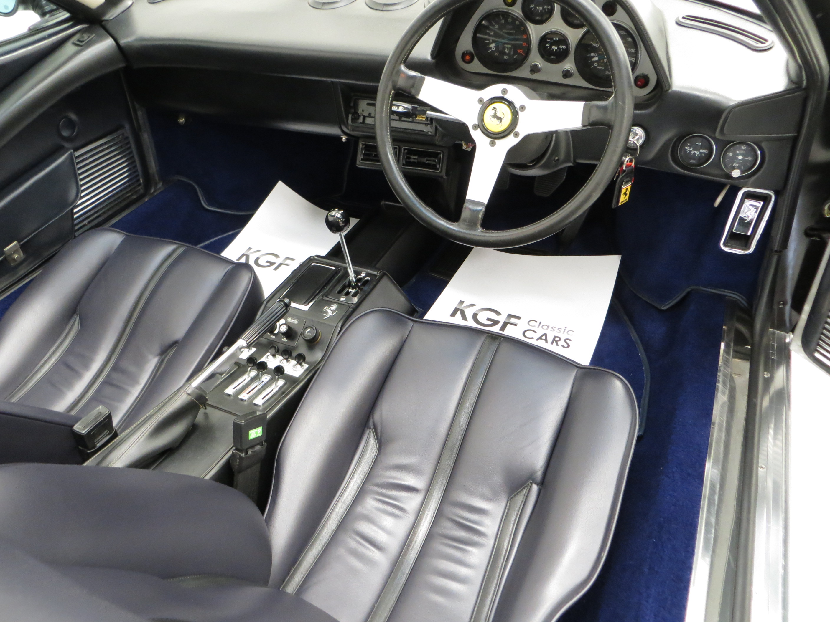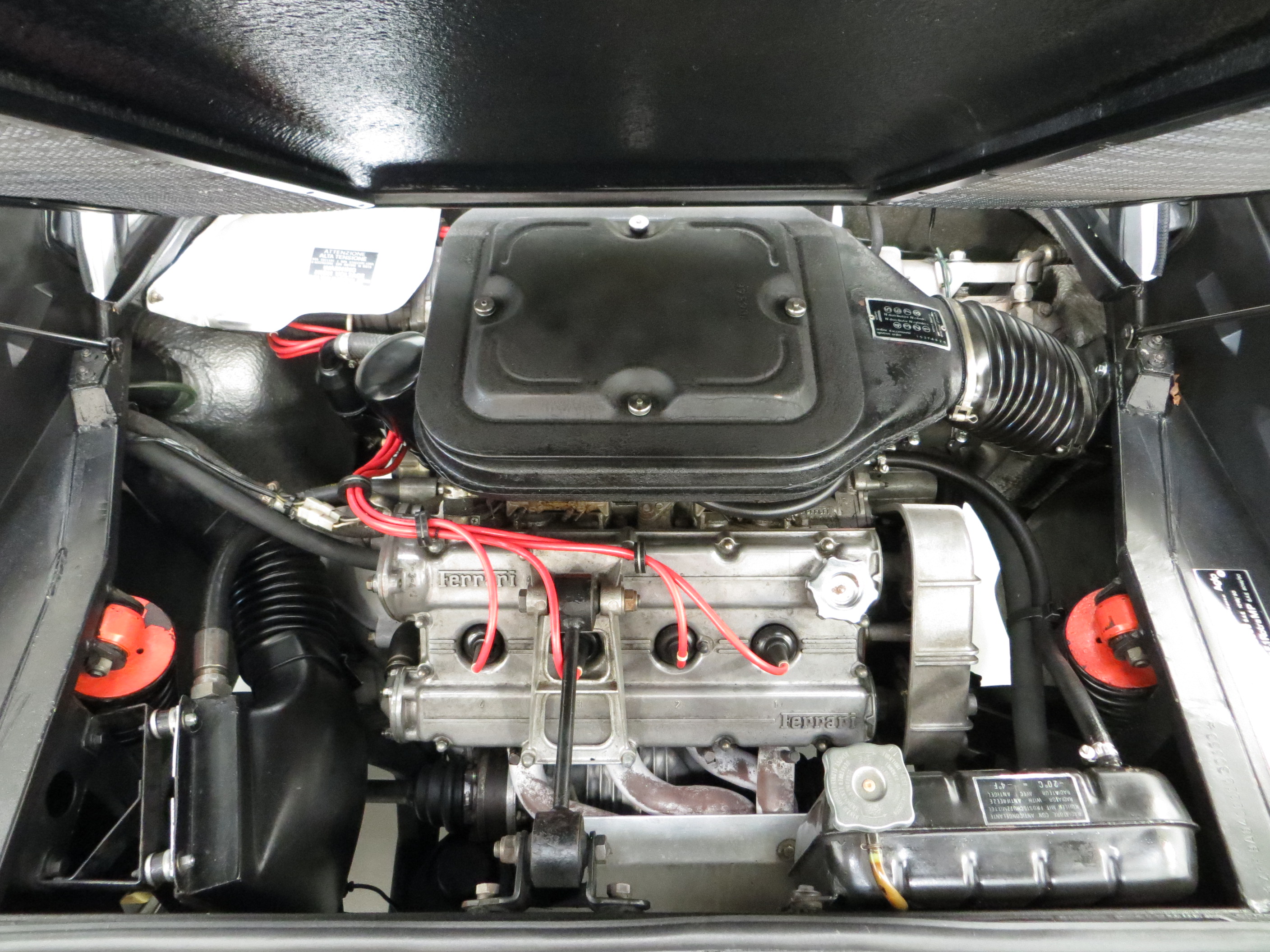 Centrally mounted, the excellent V8 powerplant displaces 2926cc and incredibly each engine was assembled by a single engine builder. Fed by four twin-choke Weber 40 DCNF carburettors producing an exhilarating induction note, 255bhp is enough to propel this car to 60mph in 6.1 secs and on to a top speed of 152mph. Regular documented servicing ensures excellent reliability and performance. The last service was in August 2018 and a major service including cambelts was carried out in May 2016 by Ferrari specialist Rardley Motors Ltd. The 5-speed ‘dog-leg’ gearbox with a single plate dry clutch is controlled perfectly through the Ferrari open-gated gearshift selector.