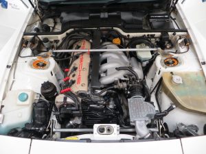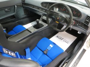 Zinc galvanised steel body, integral front air dam, rear spoiler, Rear under-lip spoiler, pop-up halogen headlamps, electric hatch release, power windows, coolant temperature and oil pressure gauge, central door locking. Race Specification; AST 5100 front and rear coil-overs, AST adjustable front top mounts, Eibach front and rear springs, polished aluminium strut brace, adjustable rear anti-roll bar, EBC Yellow Brake Pads, Goodridge braided hoses, half roll cage with harness bar, Corbeau sprint seats, Momo steering wheel, short shift-kit, alcantara gaiter and knob, driver 5 point TRS harness (in date), passenger 4 Point TRS harness, alloy driver’s footrest, alloy/black Porsche door kickplates, Lifeline fire extinguisher.
