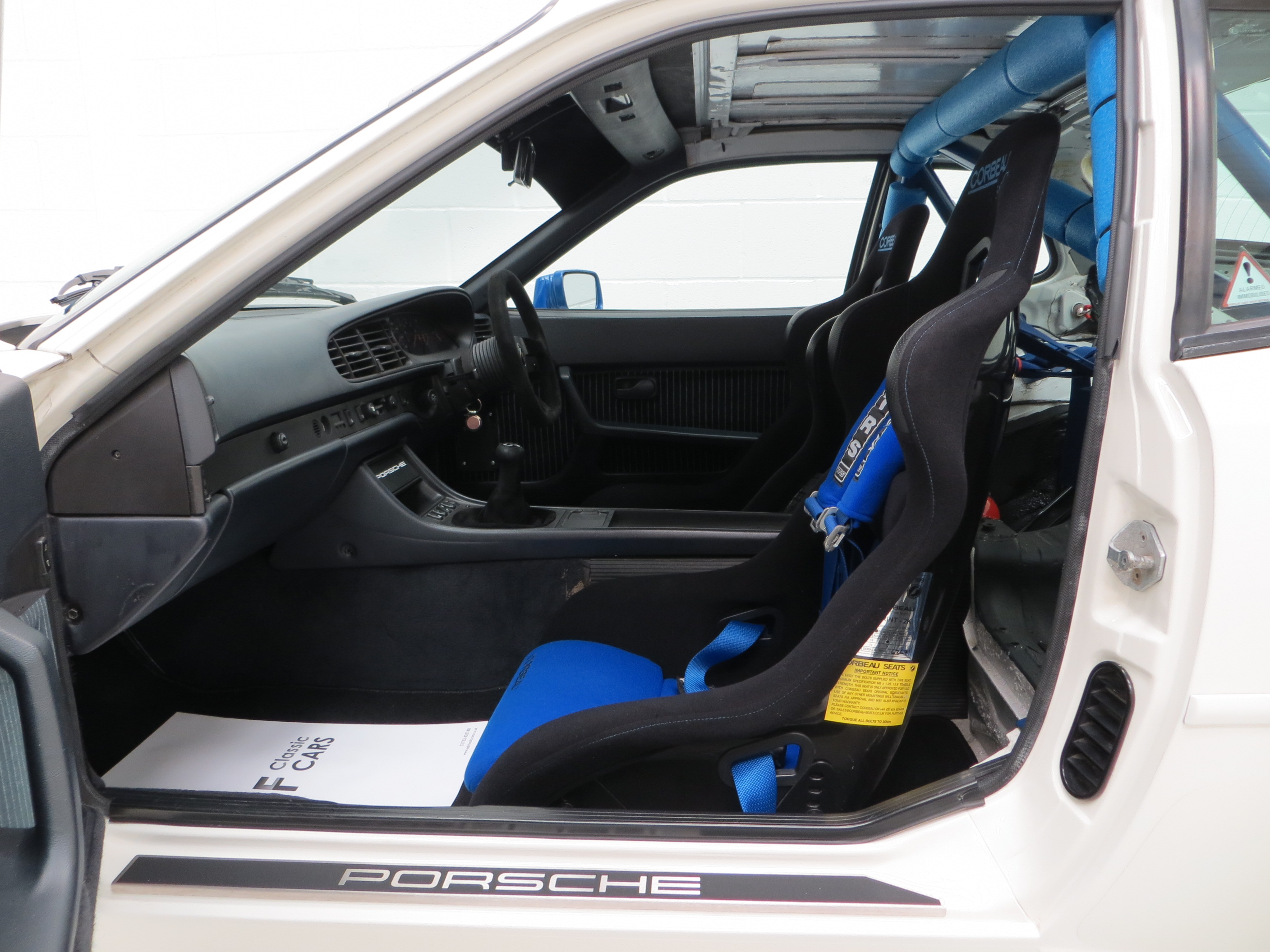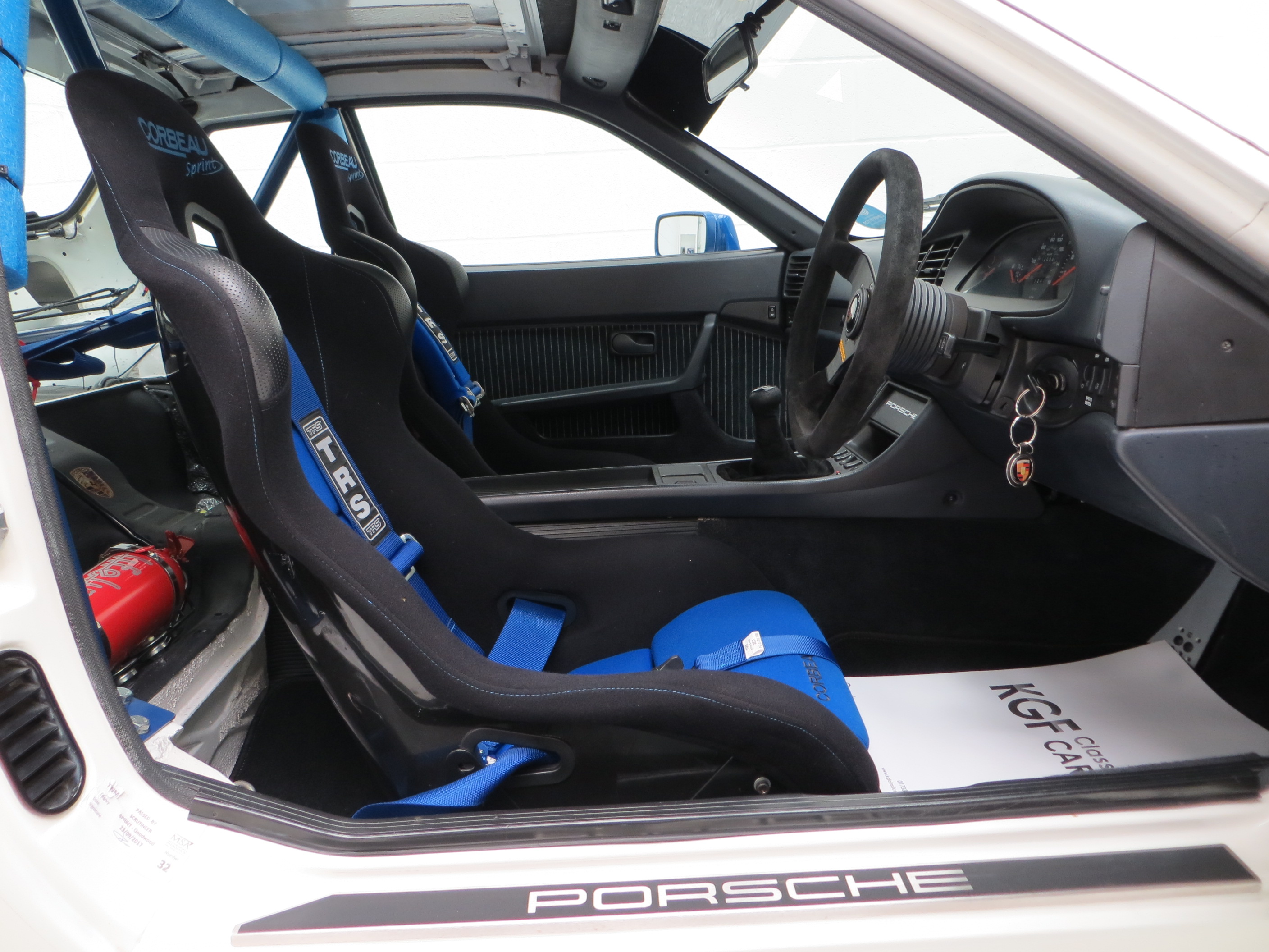 The muscular lines of this thrilling Porsche still look amazing today finished in Alpine White, (Code L90E). Unique Blue exterior styling to the mirrors, rear spoiler, bumper inserts and door handles combined with the Porsche inscription to the front screen and the previous owners name, easily removed on the driver’s door, leave no doubt to the racing pedigree this car enjoys. A deep uniform gloss shine will surprise those expecting evidence of a hard driven race car thanks to meticulous upkeep and the owners desire to have an eye-catching road car to enjoy and show. Safety bonnet catches, front and rear recovery tow stickers and Tag Heuer logos to the front wings provide both necessary safety features and a great visual presence. All trim, rubbers, glass and lenses are in remarkable order and guaranteed fun awaits the next owner.
