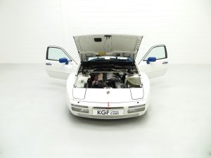 This 944 S2 four cylinder 3.0 16v engine produces 220bhp at 6900rpm as verified on a rolling road, a slight increase of 9bhp more than a standard car. Maintained religiously by Addspeed Performance Cars Ltd, the number of invoices and expenditure will reassure the next owner of the care lavished on this car to provide faultless performance. Expect the factory quoted 0-62mph of 7.1 seconds and a top speed of 149mph to be better thanks to more power and less weight. The engine bay is very clean. The 5-speed gearbox provides positive gear changes thanks to a fitted short-shift kit and the clutch feel is beautifully weighted.