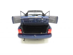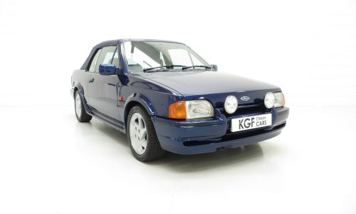 The Special Edition Ford Escort XR3i Cabriolet, unofficially referred to as the ‘All Blue’ or SE500, although it is widely considered that more than 500 cars were made so the origins of the latter are somewhat hearsay. Registered new on 1st August 1990, the supplying Ford Main Dealer was Stormont of Tunbridge Wells. All handbooks and guides are present and the original service book contains 22 stamped entries, every year without fail from new plus further invoiced services. Cambelt and water pump changes have been carried out as and when required, the most recent evidenced in June 2018 by Ford RS Specialist Tremona Garage in Southampton including a major service. The supporting invoice for this work is in the history file totalling £608.23. Completing the vehicle history is a comprehensive file of Ford main dealer and independent specialist invoices along with two Ford torch keys and even a brochure for The Special Edition Ford Escort XR3i Cabriolet.
