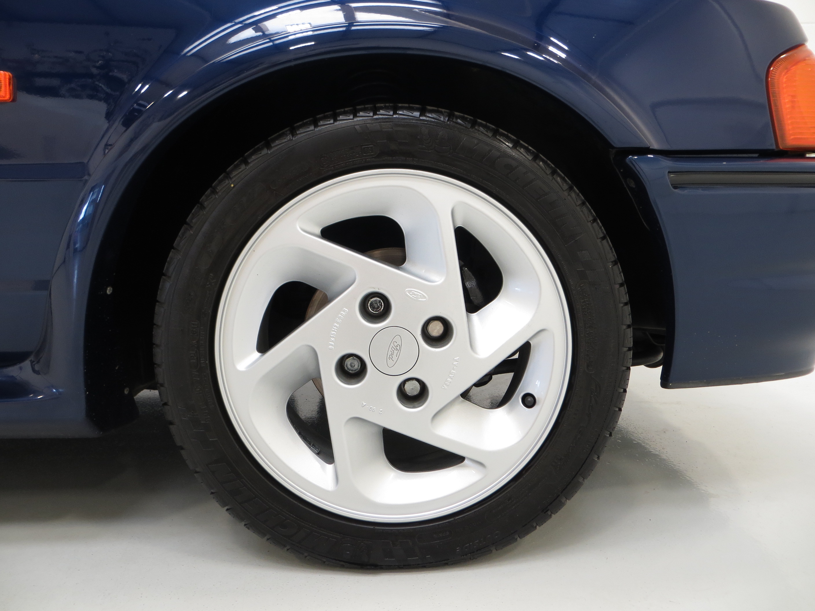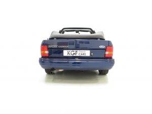 The Special Edition XR3i was launched to coincide with the final edition ‘90 Spec’ XR3i and RS Turbo, sharing features such as the revised front bumper and decal font. Available in just one colour and unique at the time to only The Special Edition Escort and the Orion Equipe, the Pacifica Blue Metallic paintwork, (Code SX0), looks superb and boasts a deep uniform shine. Age-related markings can be seen and remedial cosmetic refurbishment has been undertaken order to uphold the bright appearance. Bumpers, trim and the 90 spec style decals remain undamaged, and all glass is factory fitment with stickers and etchings and Carello/Ford light clusters are also present. Perfect in operation, the unique Blue colour keyed hood is the factory fitted item in fabulous order aside from two very small slits around the lower edge fixings, to the outer layer only and barely noticeable. The rear tonneau cover is present and immaculate. Hugely rarer than even the most expensive Fast Fords, this is a delightful and very useable Special Edition Ford Escort XR3i Cabriolet.