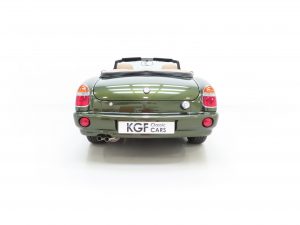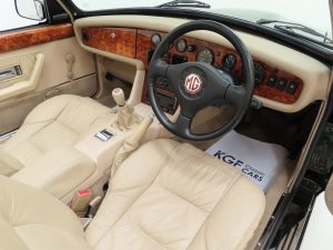 The MG RV8 was always destined to become a classic with just 1983 units made reviving a golden motoring repute and celebrating thirty years after the birth of the legendary MGB. This exceptional example spent eleven years with its sole Japanese owner who purchased the car new in 1995. Manufactured in June 1995, the vehicle was repatriated in 2006 with all importation documents and UK registration completed. The car was sold by a Hyundai Main Dealer, T. W. White & Sons of Weybridge, who imported the car from Japan. The first UK buyer was a Mr Maurice Amdur who is non other than a Physic and Clairvoyant to the Stars and for whom a quick search engine explore will reveals his close connection with countless A-List celebrities for many years! Mr Amdur never registered the car in his name and he owned for just two weeks. KGF Classic Cars contacted him to ask why he sold it so soon and he kindly replied in writing stating that he found himself too tall for the car and that it was an excellent car. He went on to say he believes it to be a mistake that he sold it and he would happily speak to a new owner to offer guidance on their future together! The car was subsequently sold to the only UK registered owner, Mr Noel, who has owned it since.