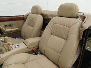 The 3.9 litre V8 is extremely flexible with large reserves of torque and 190bhp giving effortless midrange overtaking. 0-60mph is despatched in 5.9 seconds and a top speed of 135mph is quoted. The engine bay is spotlessly clean and factory original with all markings, plates and stickers present and bright. The V8 burble through the twin exhaust pipe is intoxicating. Fitted with the later R380 gearbox, (reverse below fifth), changes are reassuringly precise with a progressive light clutch action. Delightful.
